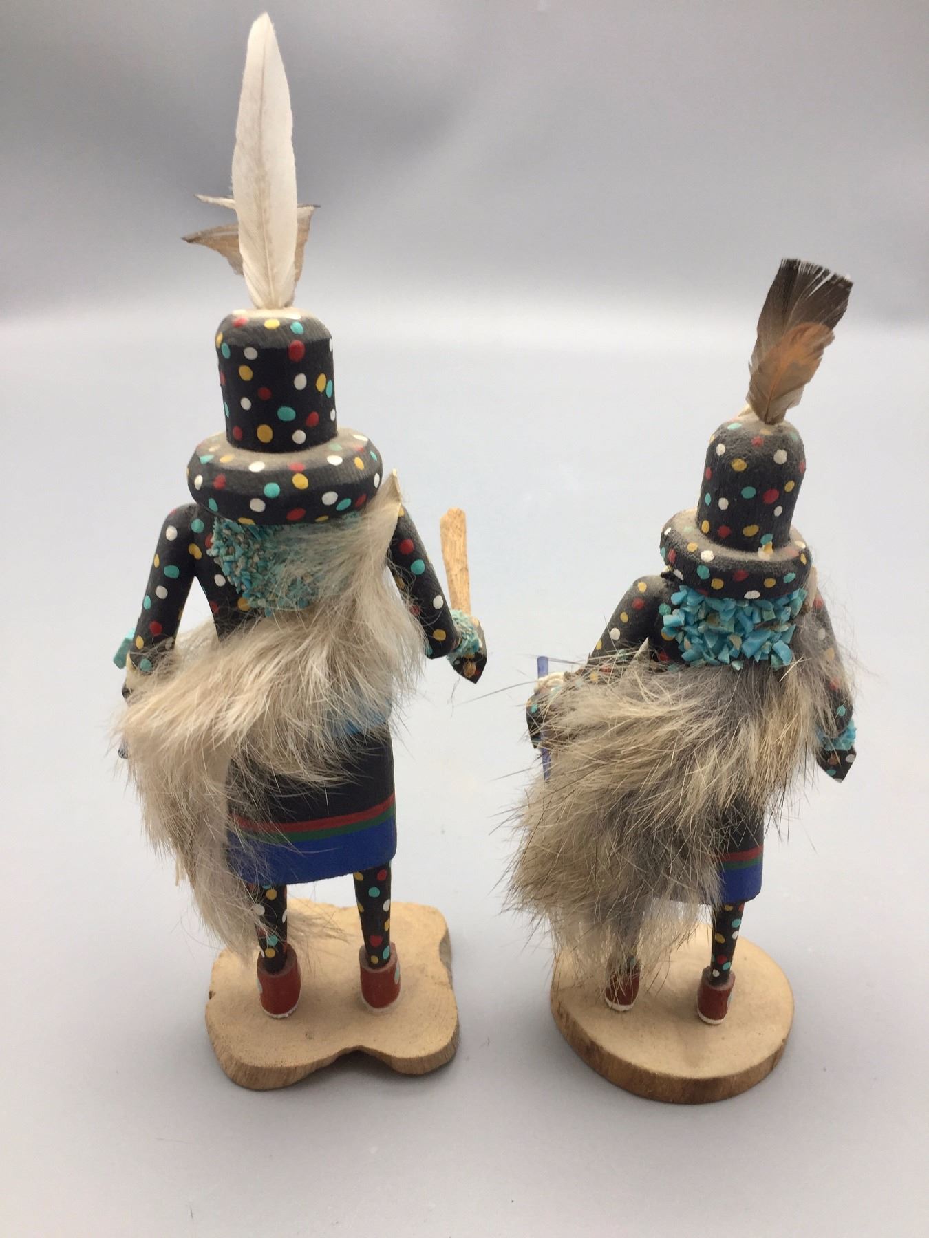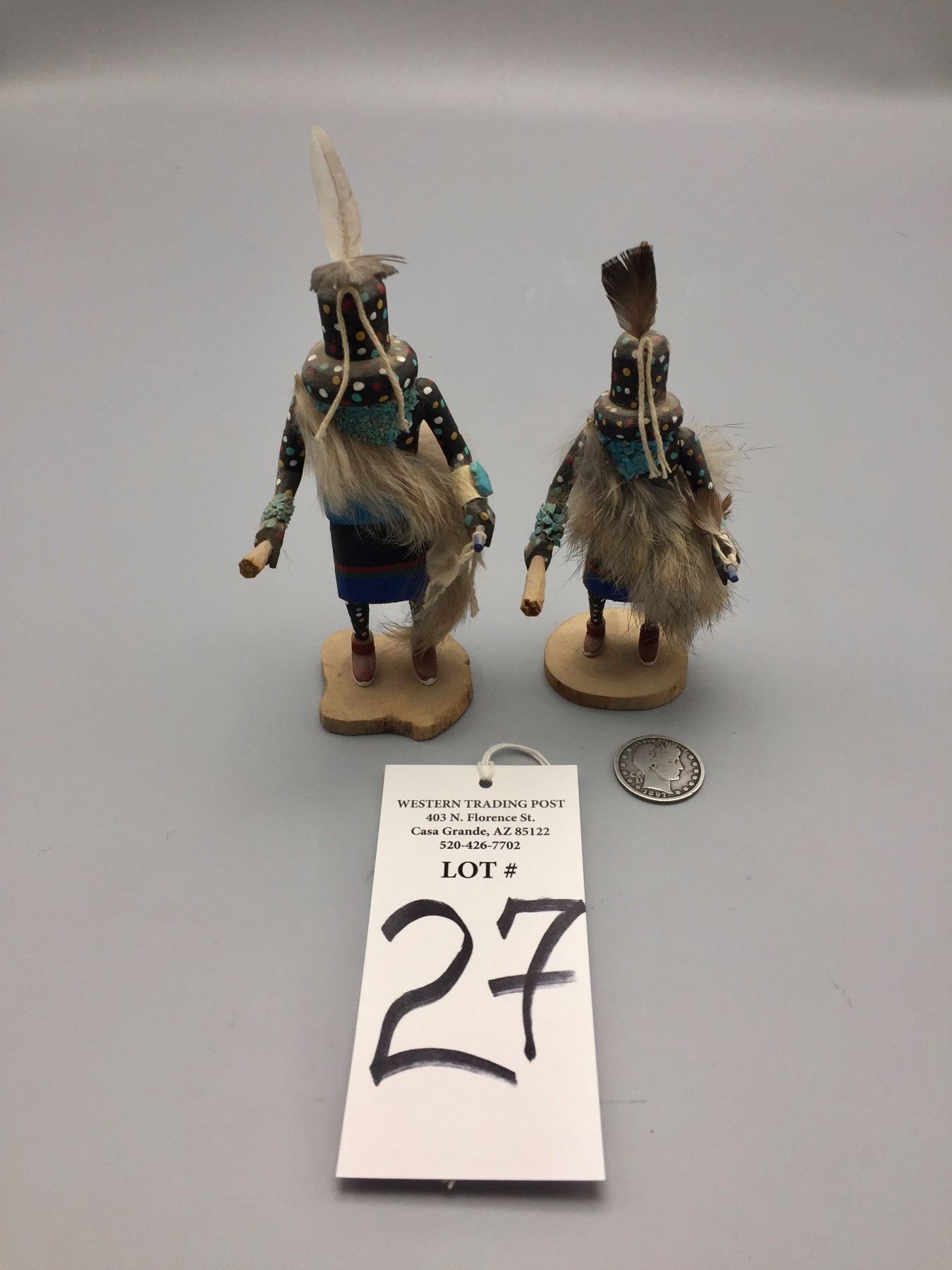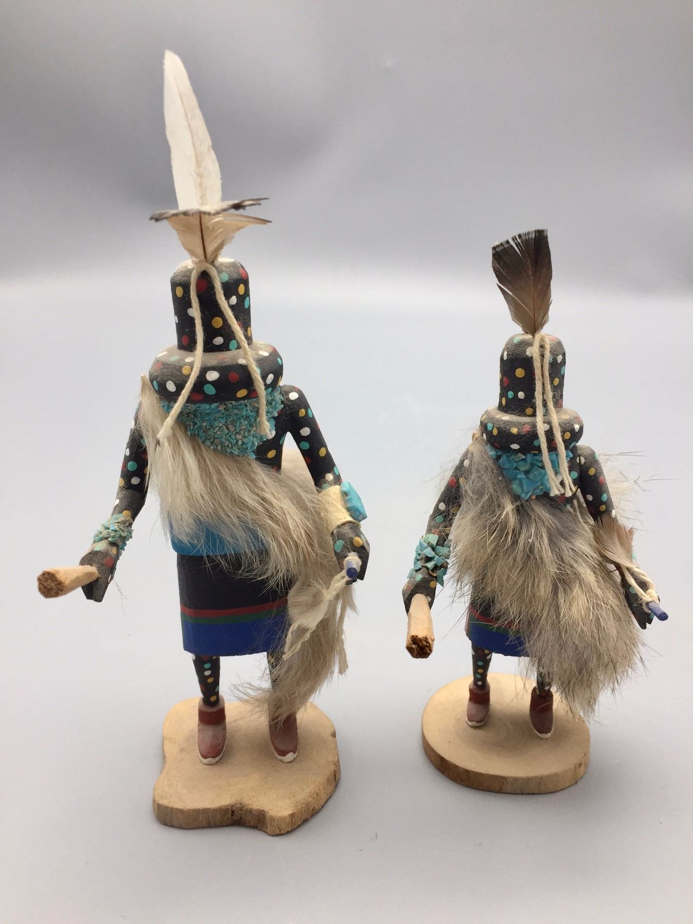 Maker: Steven Comosona, Zuni. Approx. Age: Fairly modern. Size: Both measure approx. 3” at their widest and 5” to 6” h. Additional Info: Pair of small Zuni Fire God kachinas. Condition: Good for it’s age, NOS from a dealer who is retiring. Please look closely at the pictures - they are an important part of our description. Shipping: There will be a $7 handling / packaging fee for shipping this lot. The actual cost of postage will be added on top of that.