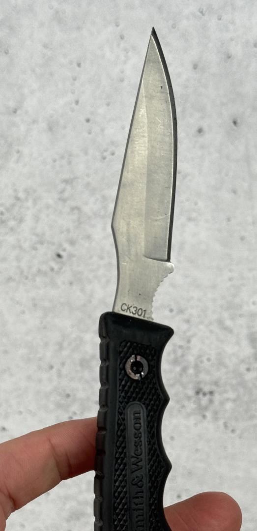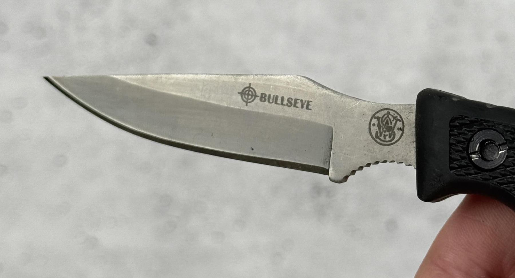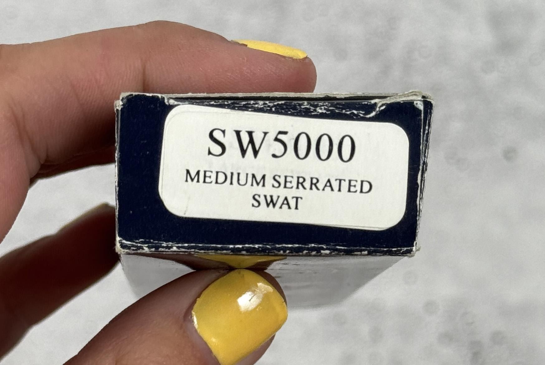 SW5000 Medium Serrated SWAT is new in box. The Bullseye is a CK301 Mini fixed blade and has never been used or carried. It is 6 3/8" long.
