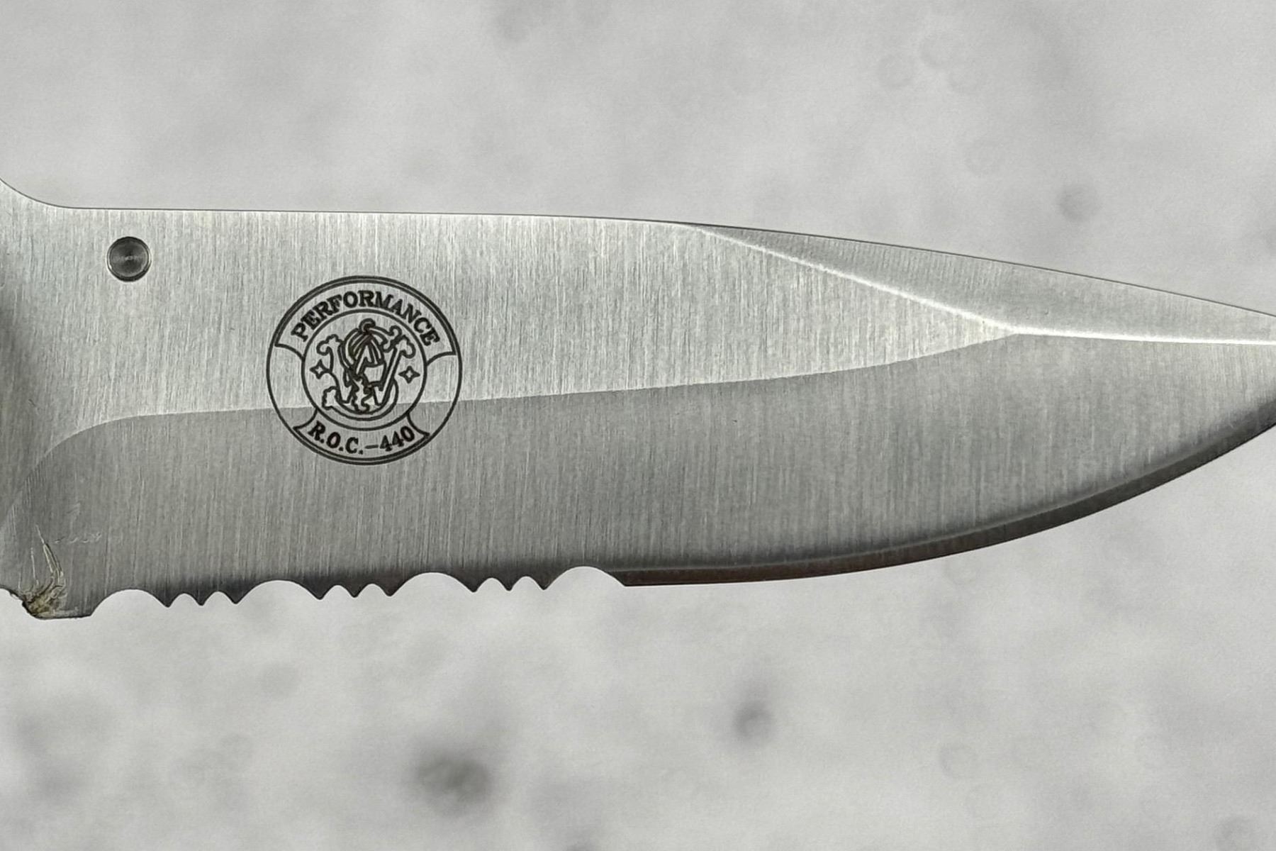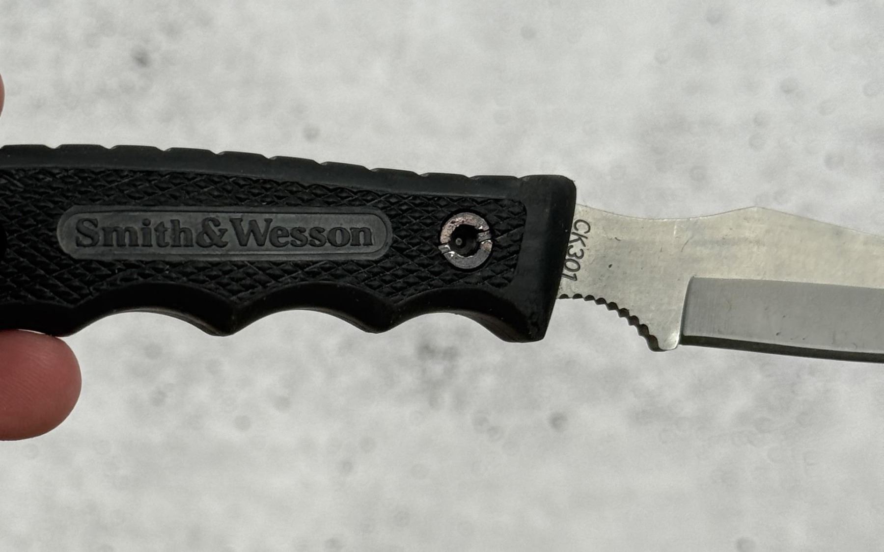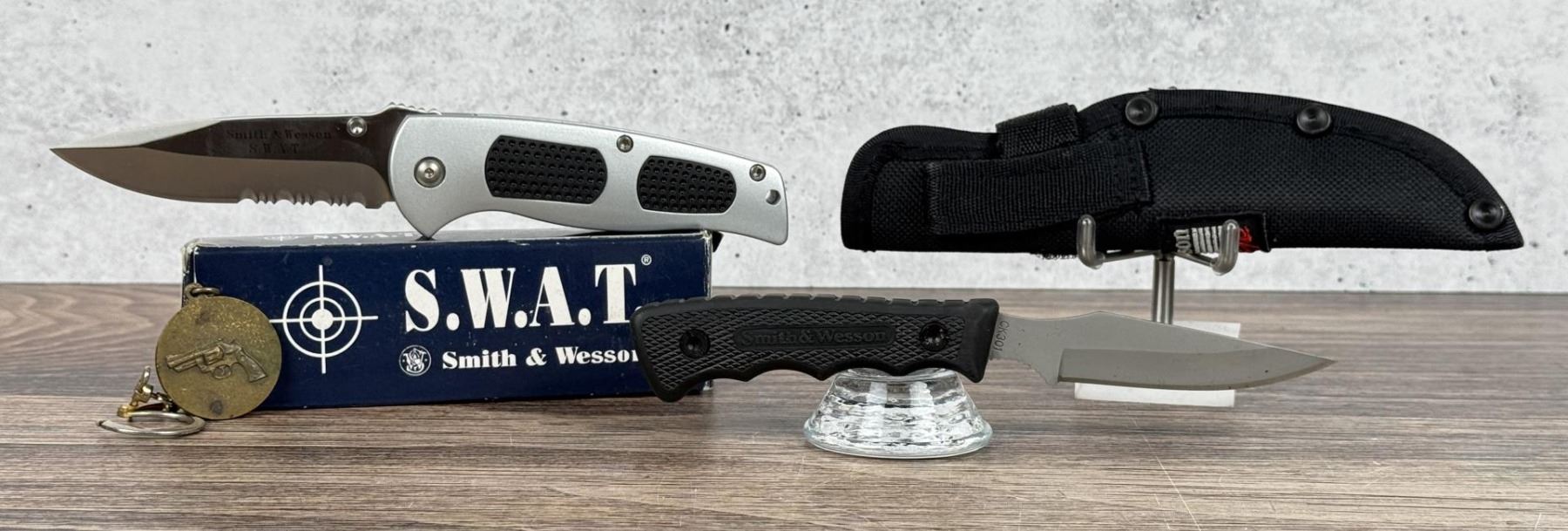 SW5000 Medium Serrated SWAT is new in box. The Bullseye is a CK301 Mini fixed blade and has never been used or carried. It is 6 3/8" long.