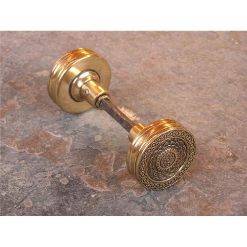 </font></strong>Pair of solid brass doorknobs with symmetrical design.</font>
