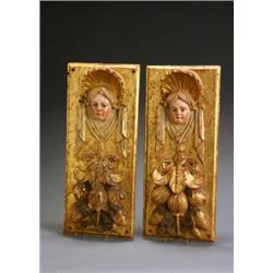 Pair of South American Gilt and Polychrome Decorated Figural Plaques