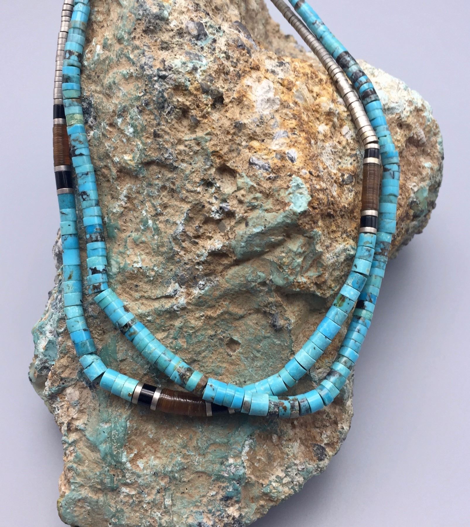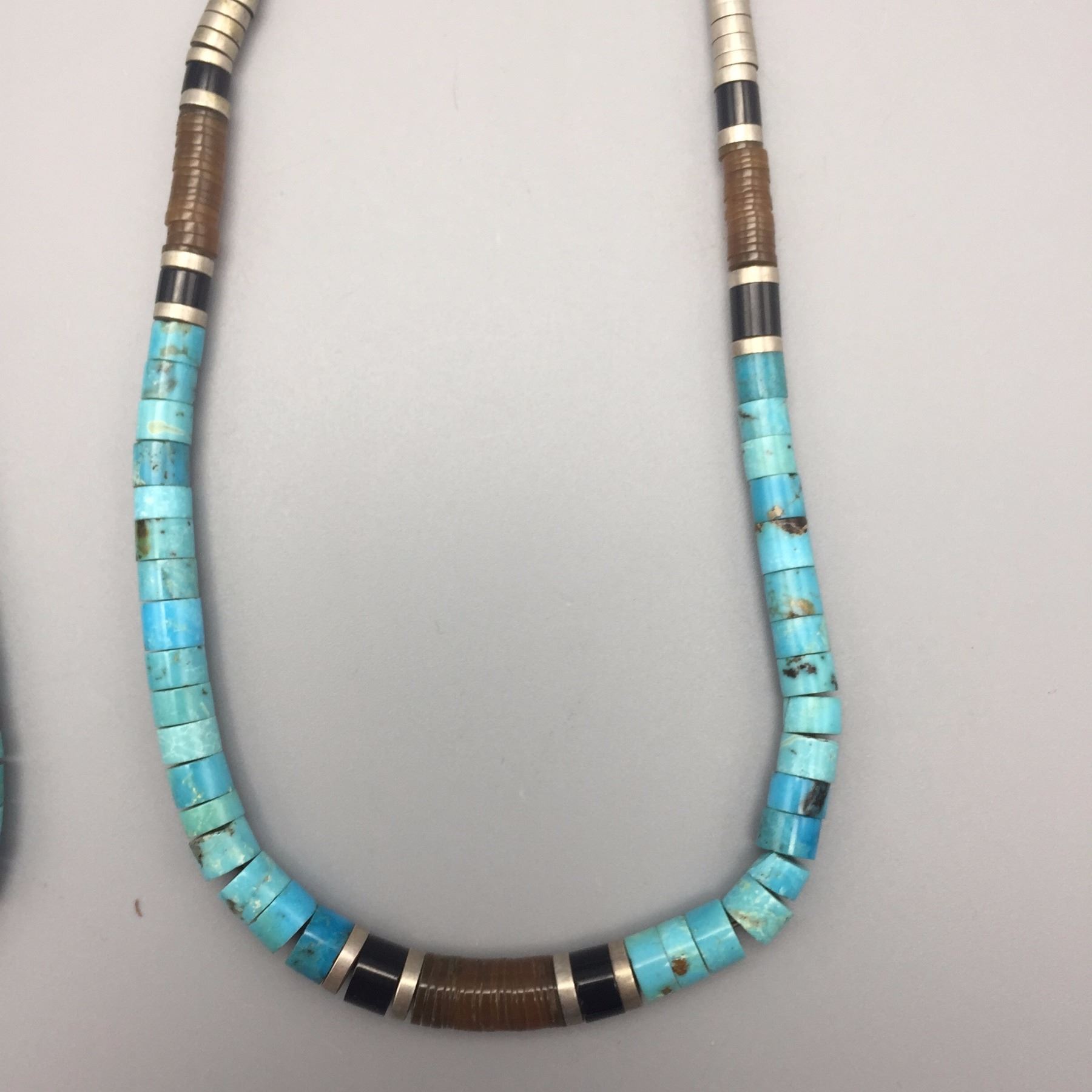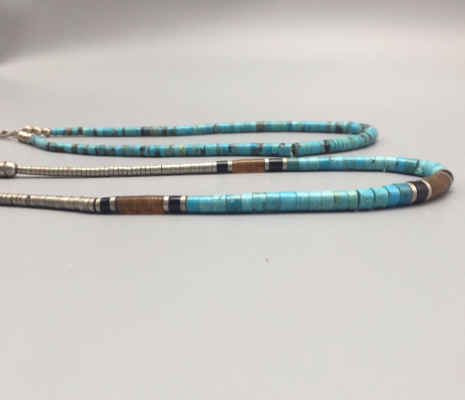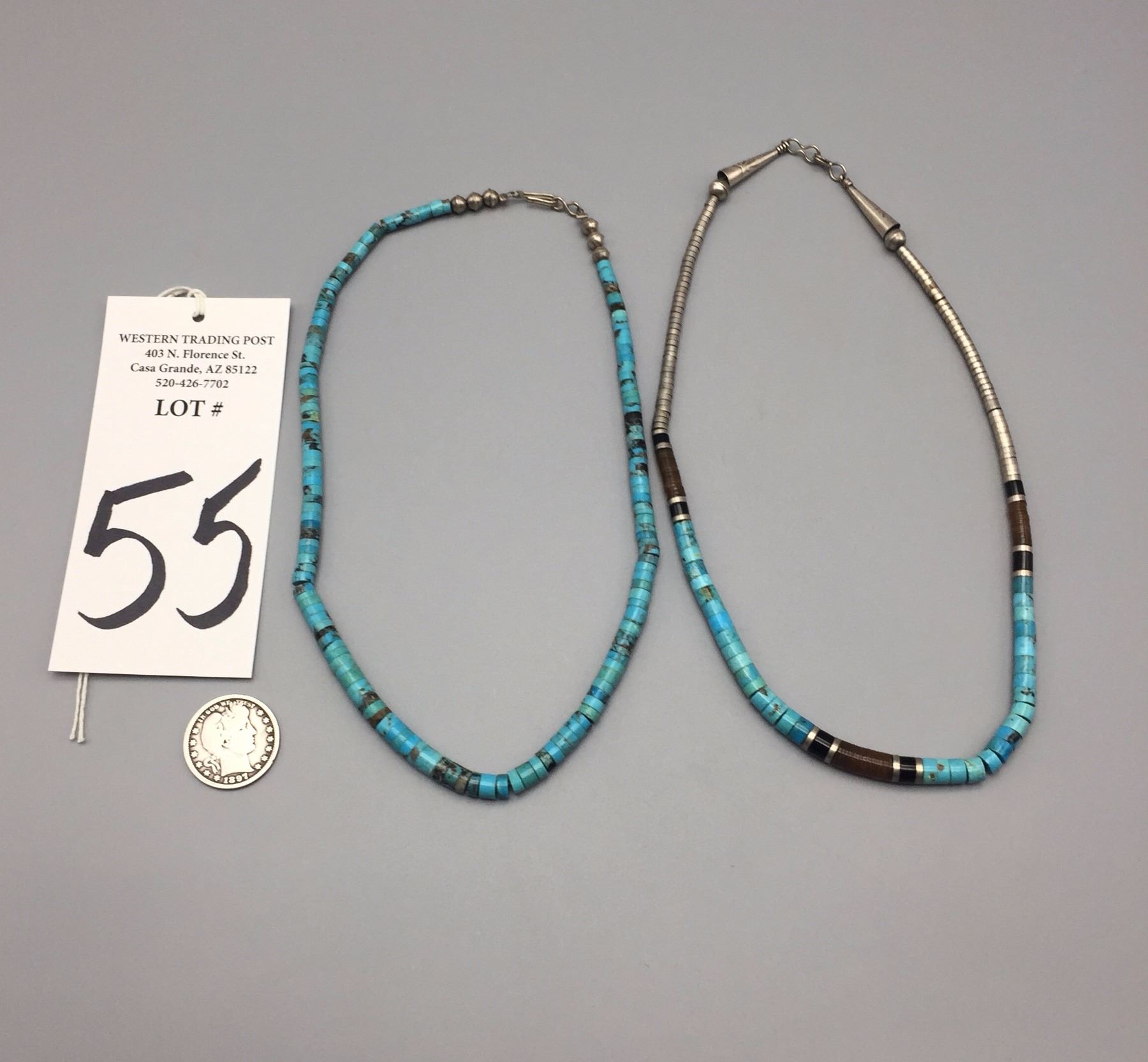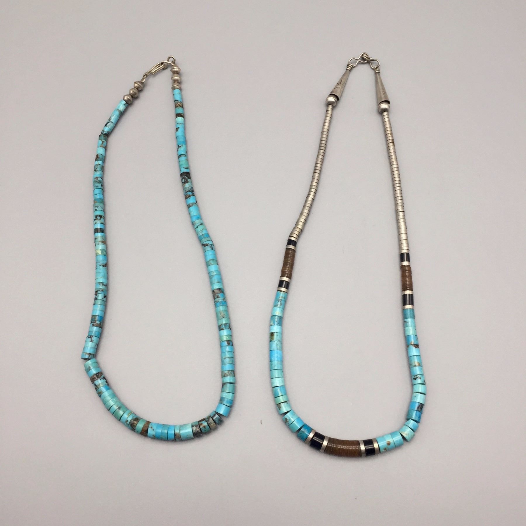 Maker: Unknown. Approx. Age: Fairly modern. Size: Fits 16” around the neck and lot weighs 45.4 g. Additional Info: Pair of southwest style necklaces. Condition: Good, normal wear expected. Please look closely at the pictures - they are an important part of our description. Shipping: There will be a $5 handling / packaging fee for shipping this lot. The actual cost of postage will be added on top of that.