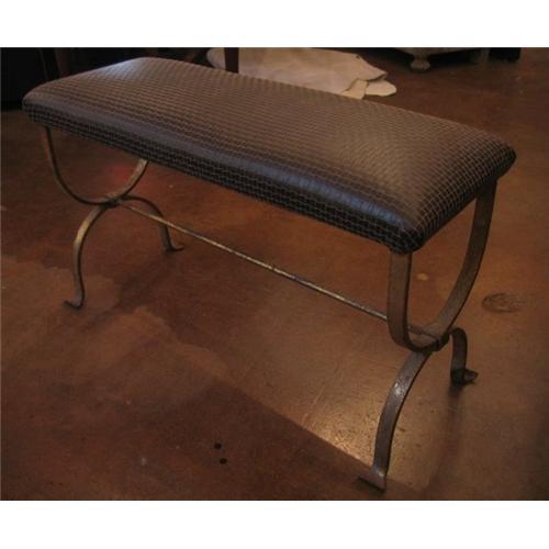 This pair of Spanish benches is made of gilded iron and newly upholsted in fine leather. Very stylish with classic lines and comfortable enough to serve as additional seating.