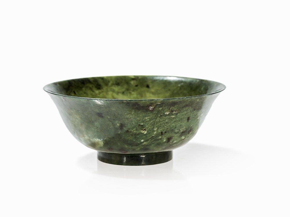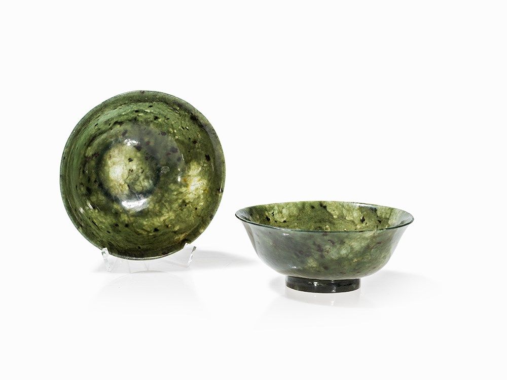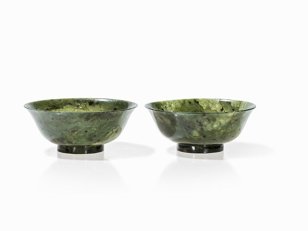 Pair of Spinach-Green Jade Bowls, 18th/19th C.