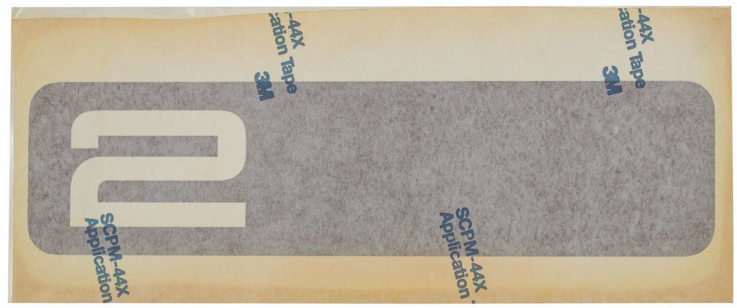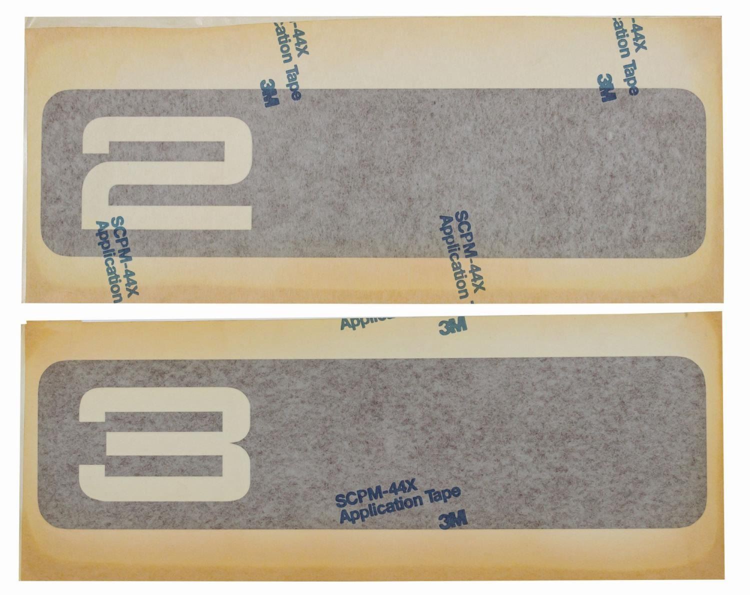 (Disneyland, c.1980s) A pair of decals from the loading area of Star Tours. One decal features the "2" and the other "3," indicating to guests where they are meant to load depending on their assigned boarding group. Both decals are unused and are still attached to their paper backing. Measuring 4.5"x18" on their approximately 7.25"x19" backings, the decals are in fine condition with minimal wear. There is some discoloration to the backing paper around the edges due to light exposure.