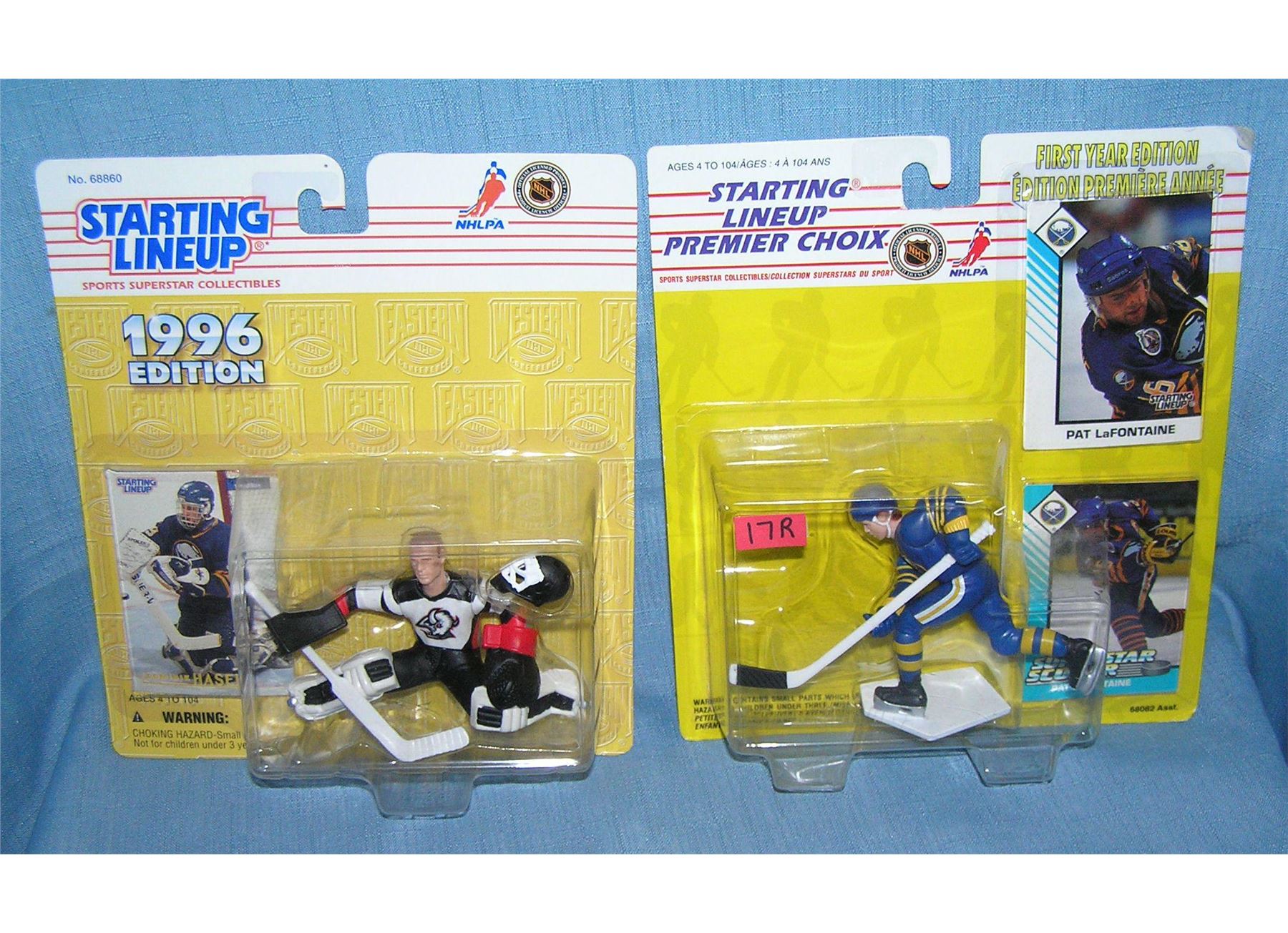 Pair of vintage Starting Lineup Hockey sports figures includes Pat LaFontaine and Dominik Hasek est. value $35.00-$45.00