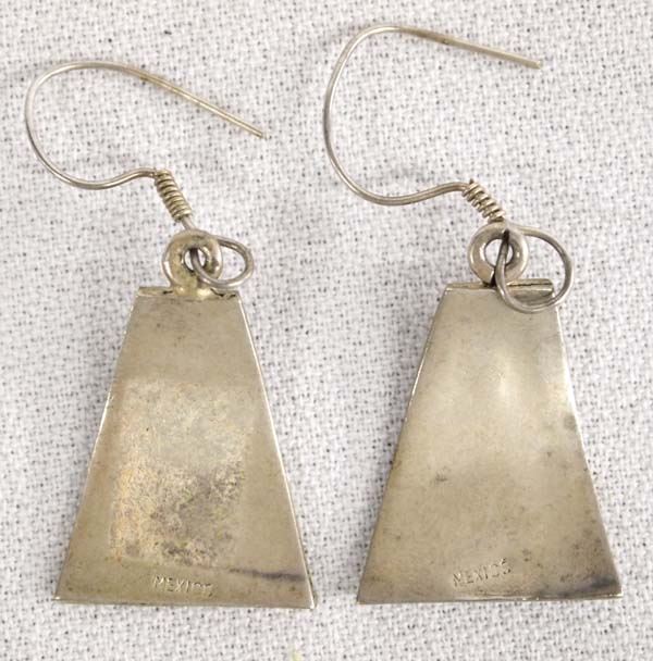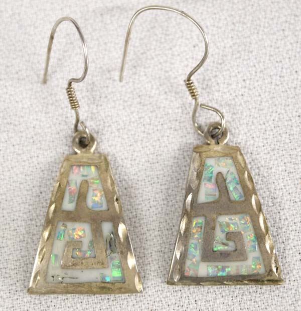 Pair of Sterling & Opal Greek Key Design Earrings, measure 1''L, 5.5g in total wt.