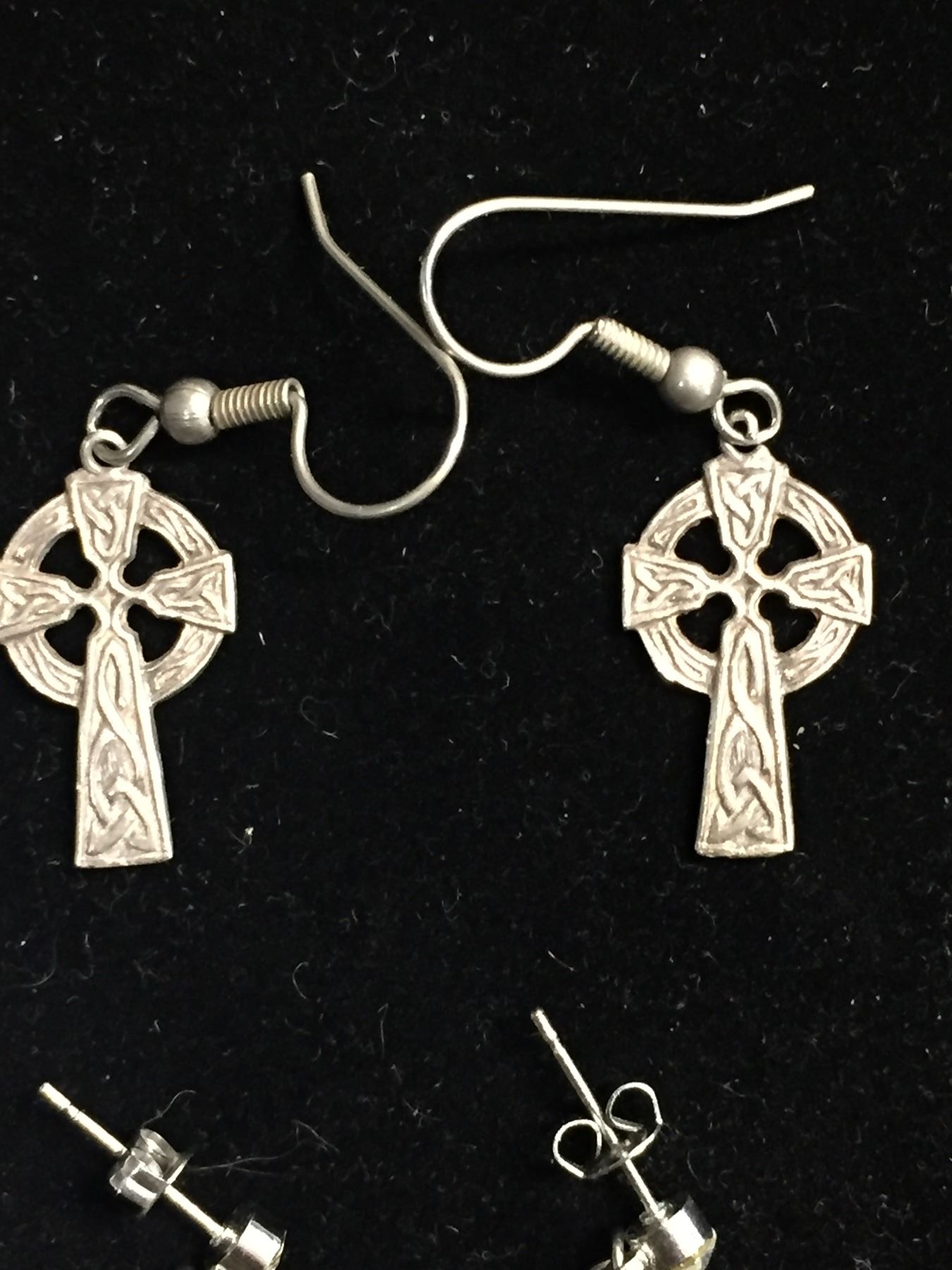 Pair of Sterling Silver Celtic CrossEarrings + Other pair