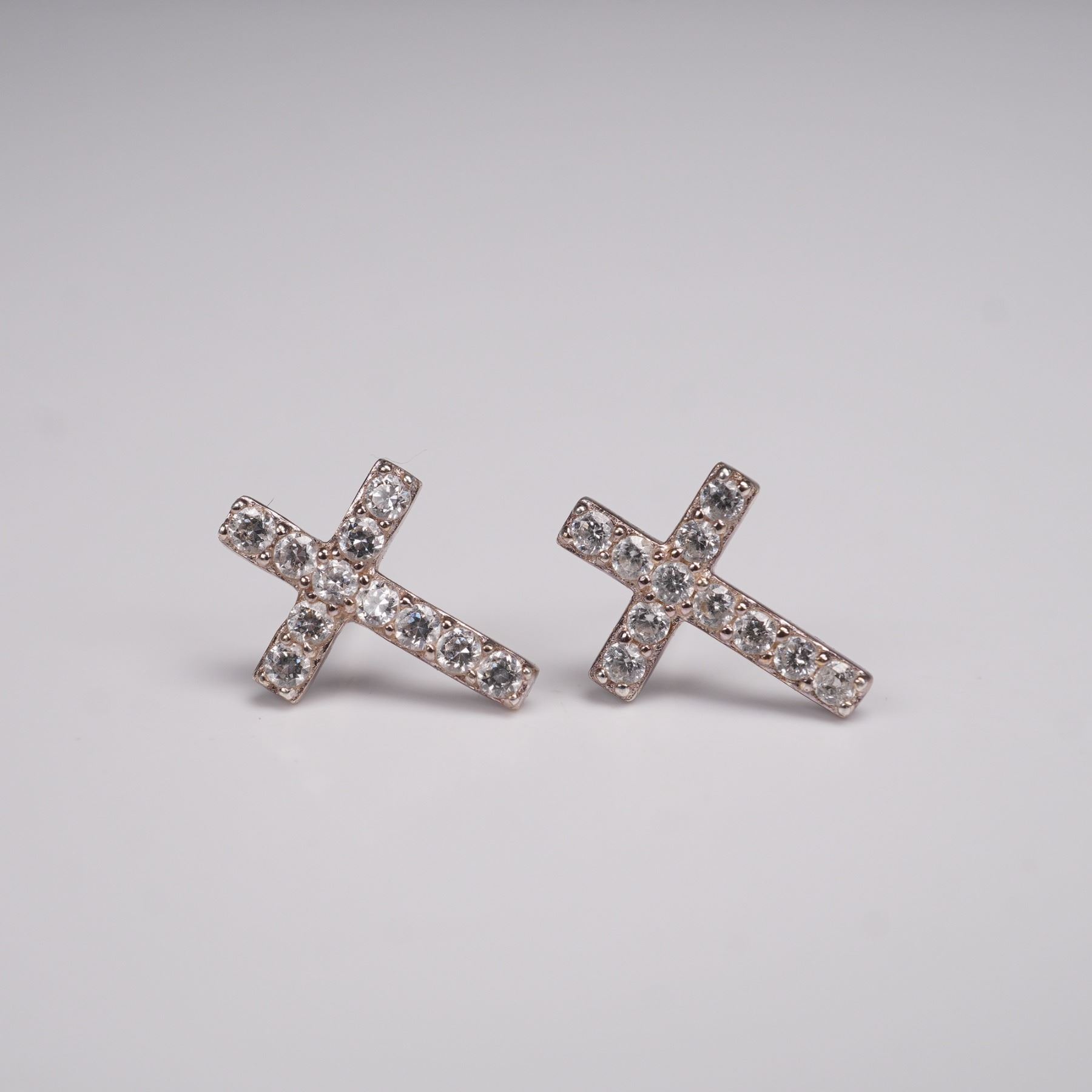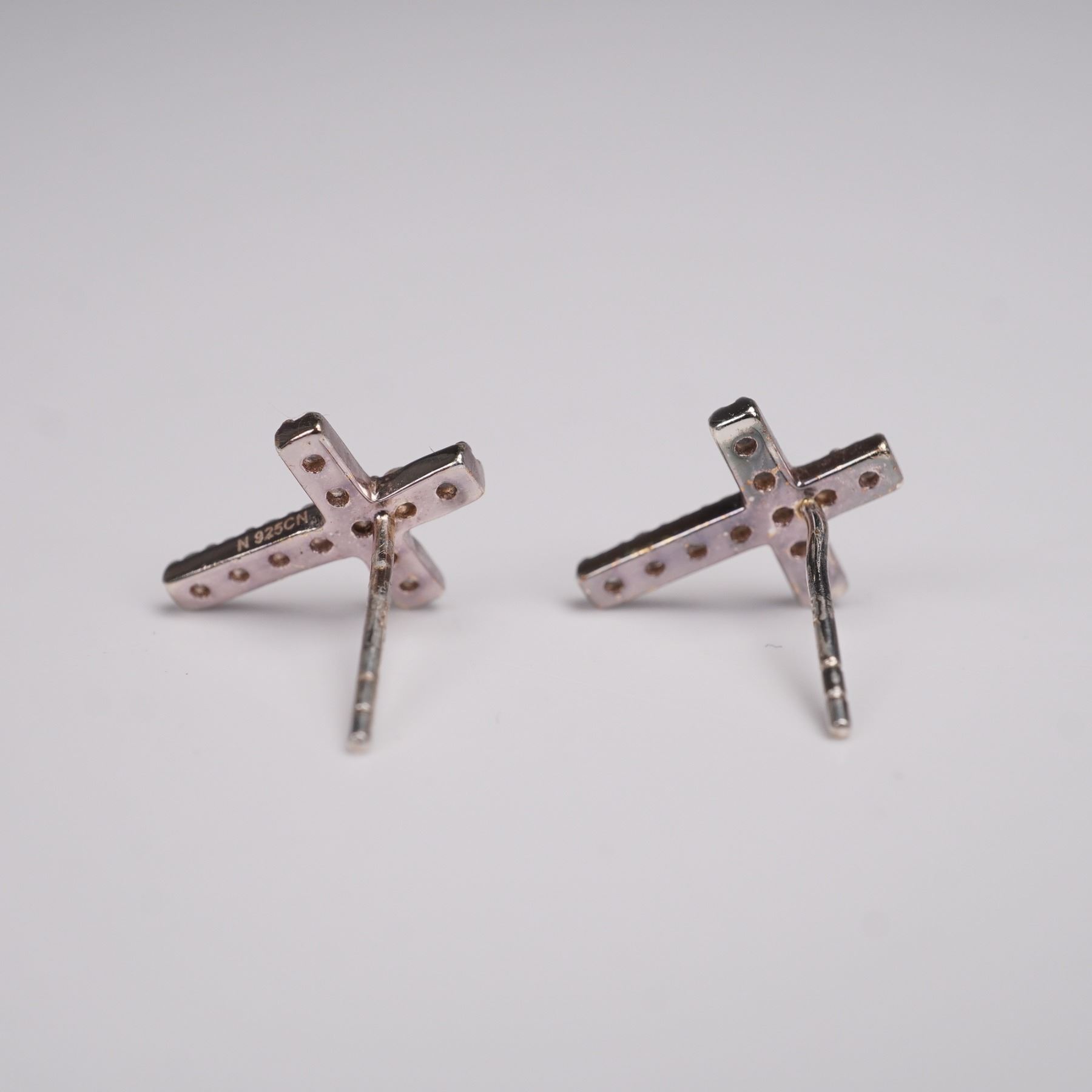 Pair of Sterling Silver Cross Stud Earrings with Clear Stones