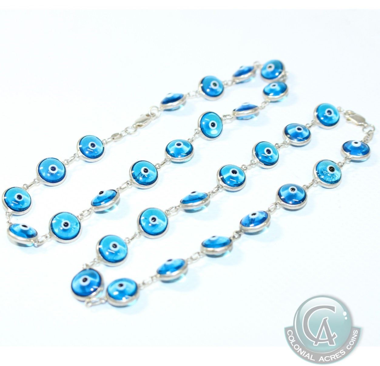 Pair of Sterling Silver Translucent Evil Eye Bracelets with lobster clasp. Each Bracelet measures 10" in length. 2pcs.