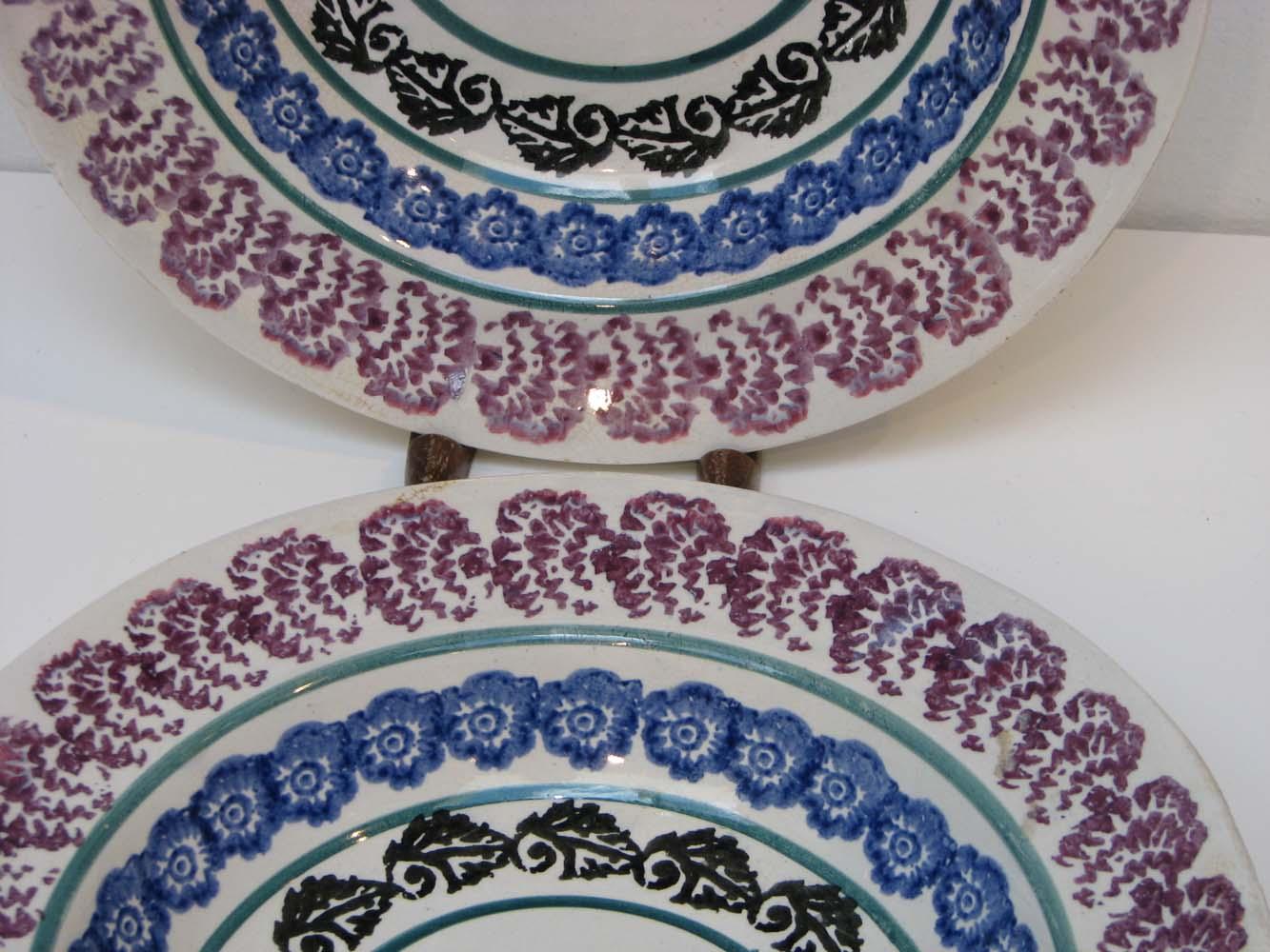 Pair of Stick Spatter Bowls with Purple Border, poss. Adams