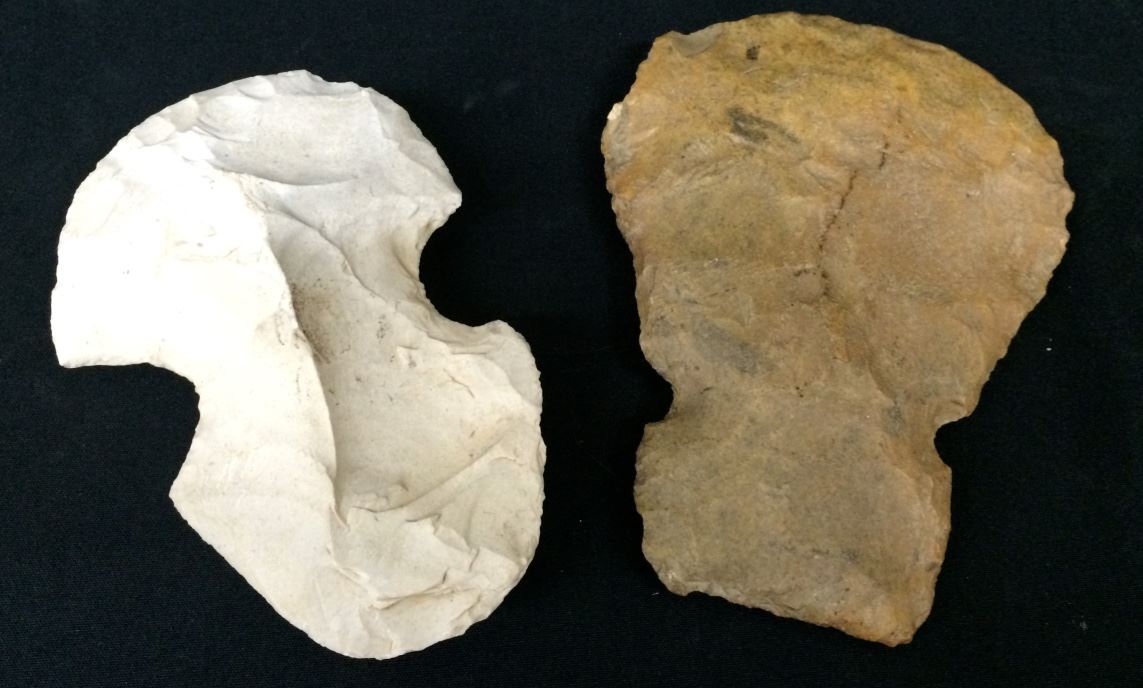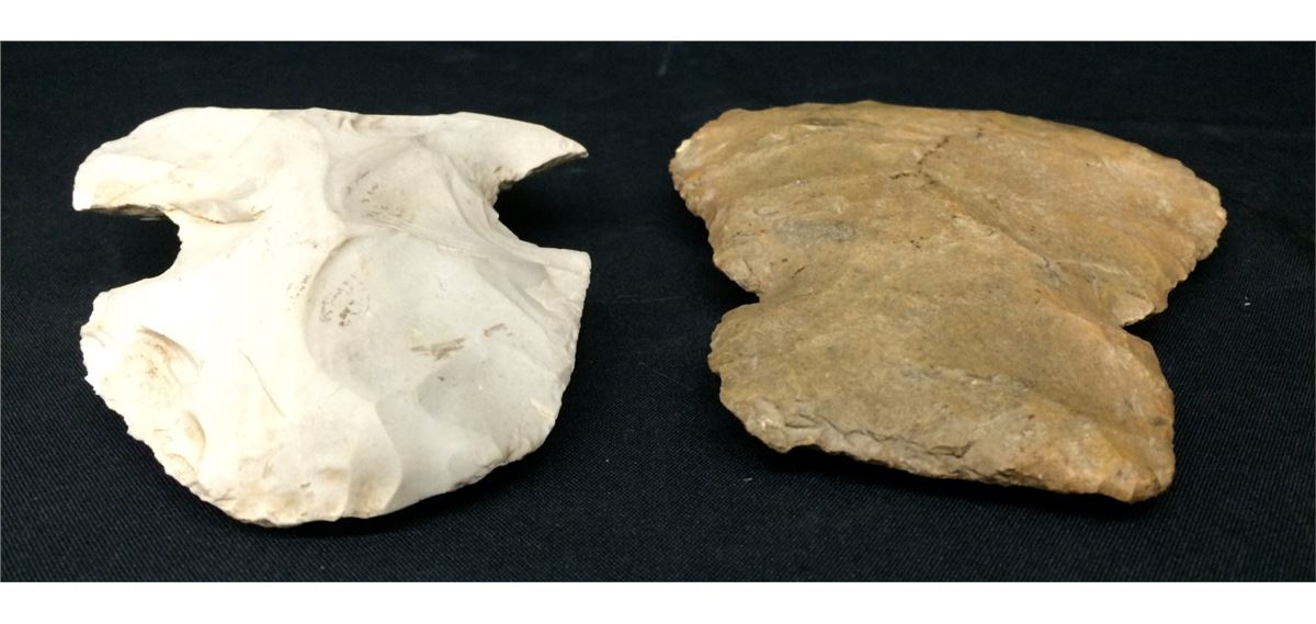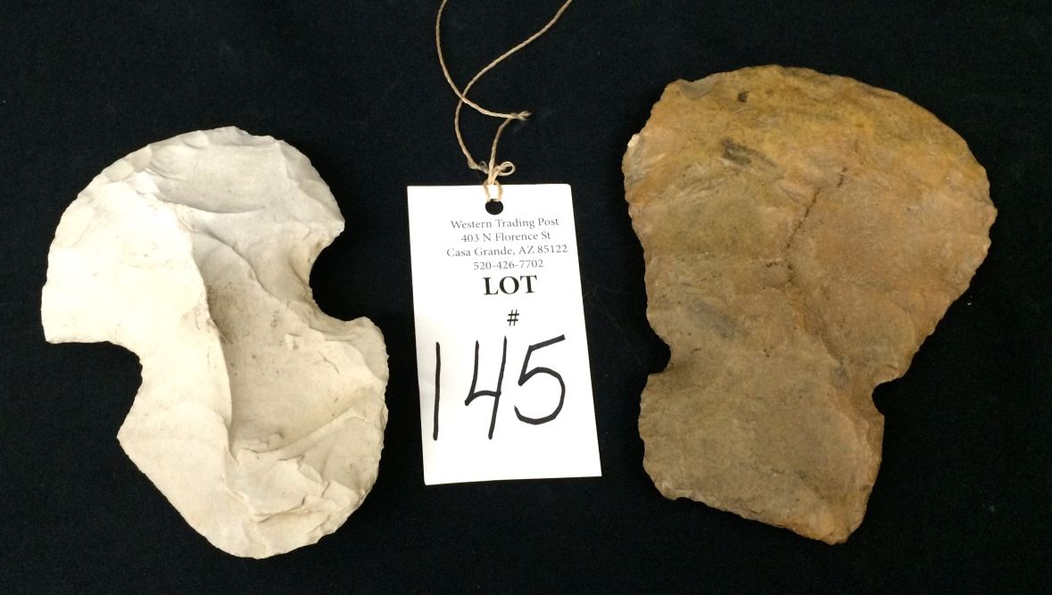 There are 2 stone axeheads for 1 money in this lot! Both are knapped using flint stone and appear to be authentic (no provenance came with these items). They are about 6” long each. Shipping: There will be a $5 handling / packaging fee for shipping this lot. The actual cost of postage will be added on top of that.