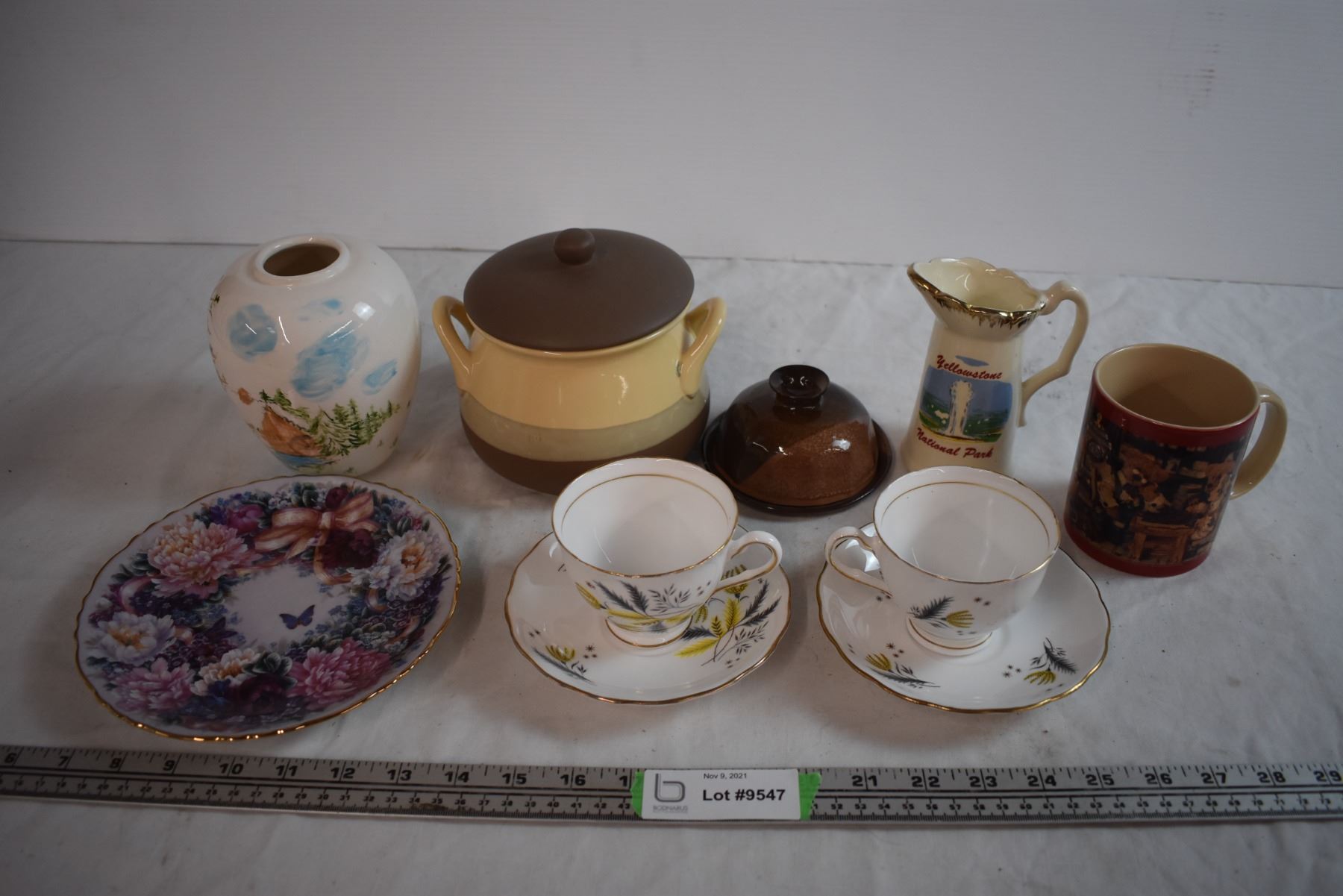 Pair of Teacups, Cheese Dish Cookie Jar, and Decorative Plate