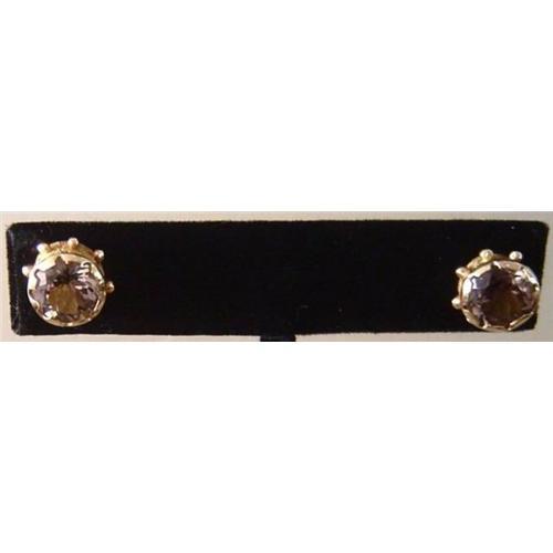 Pair of Smokey Topaz and 18K Yellow Gold Stud Earrings. Circa. 2000 American.