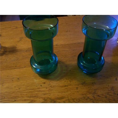 There are a few pieces of blown glass I am listing,all from the same house sale.The lady I purchased them from received them as wedding gifts when she was married in the 1960s.All very collectible and beautiful colors.Display beautifully.This pair of matching vases are a turquoise green color and stands 7 3/4" tall.