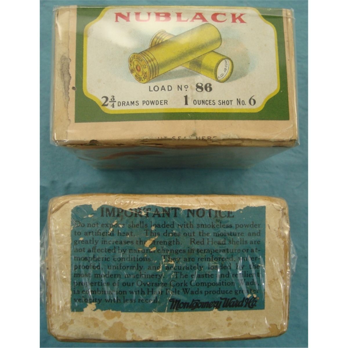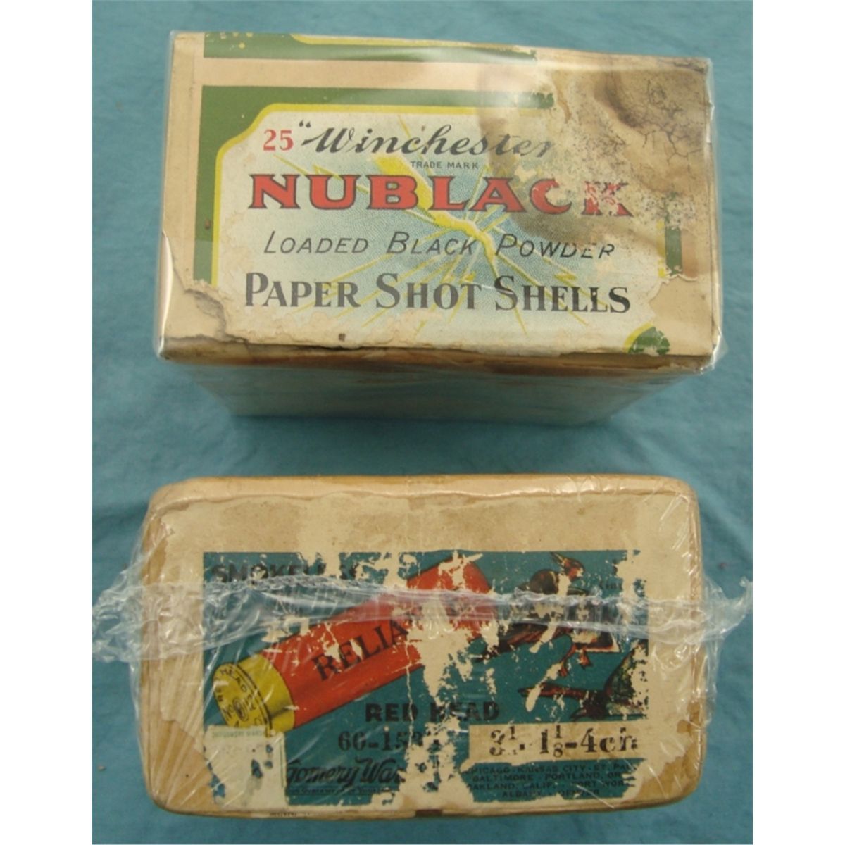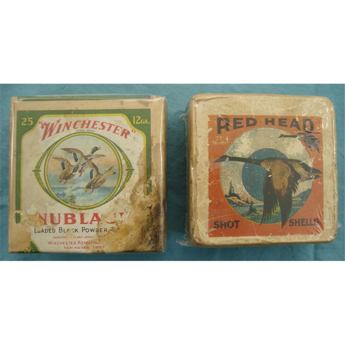 Empty Winchester Nu Black in fair condition w/one bad corner. And full box of Red Head Shells in fair condition.