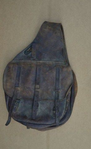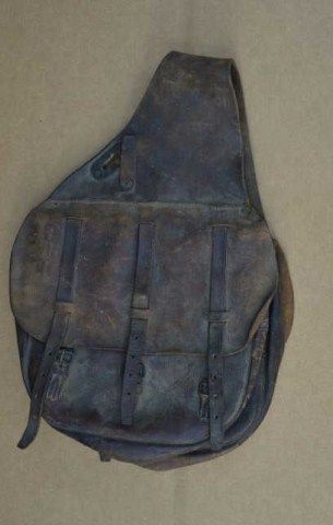 Pair of U.S. marked cavalry type saddle bags circa turn of century in good condition with normal leather aging re: cracking, scuffs etc. Est.: $100-$200.