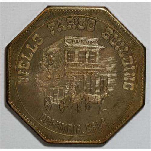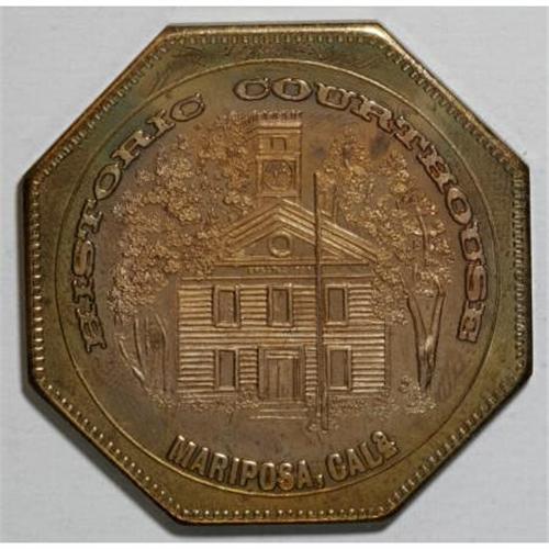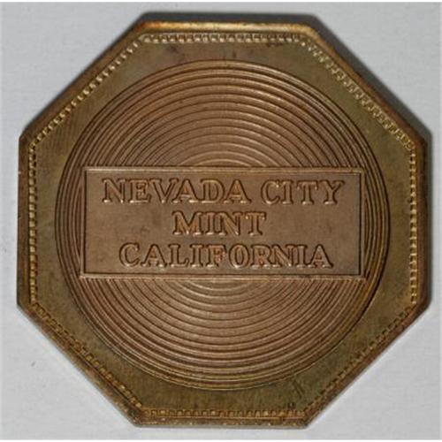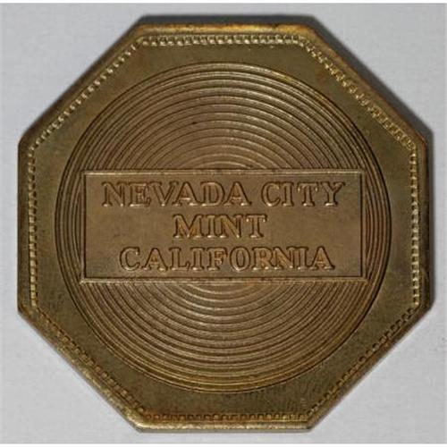 <B>Pair of Uncertified Nevada City Mint Octagonal Gold Rush Commemorative Medals.</B></I> Unlisted in Hibler-Kappen, but considered "so-called slugs." Copper alloy, 39 mm x 39 mm. These pieces, struck in the late 1970s, celebrate American gold mining history. They share a common reverse stating the minter; one displays the Wells Fargo building, while the other honors the Mariposa County Courthouse.<BR><I>From The Jankovsky Collection of California Slug Facsimiles.</B></I><BR><BR><b>Shipping:</b> Coins & Currency (<a target="_blank" href="http://www.heritageauctions.com/common/shipping.php">view shipping information</a>)
