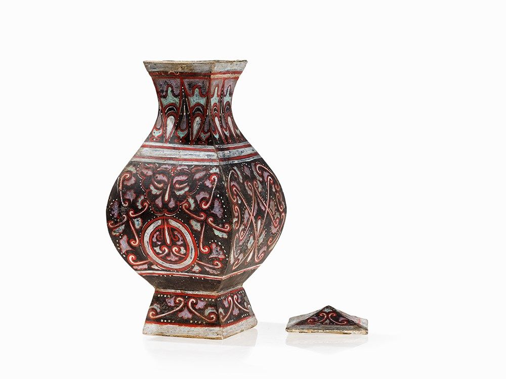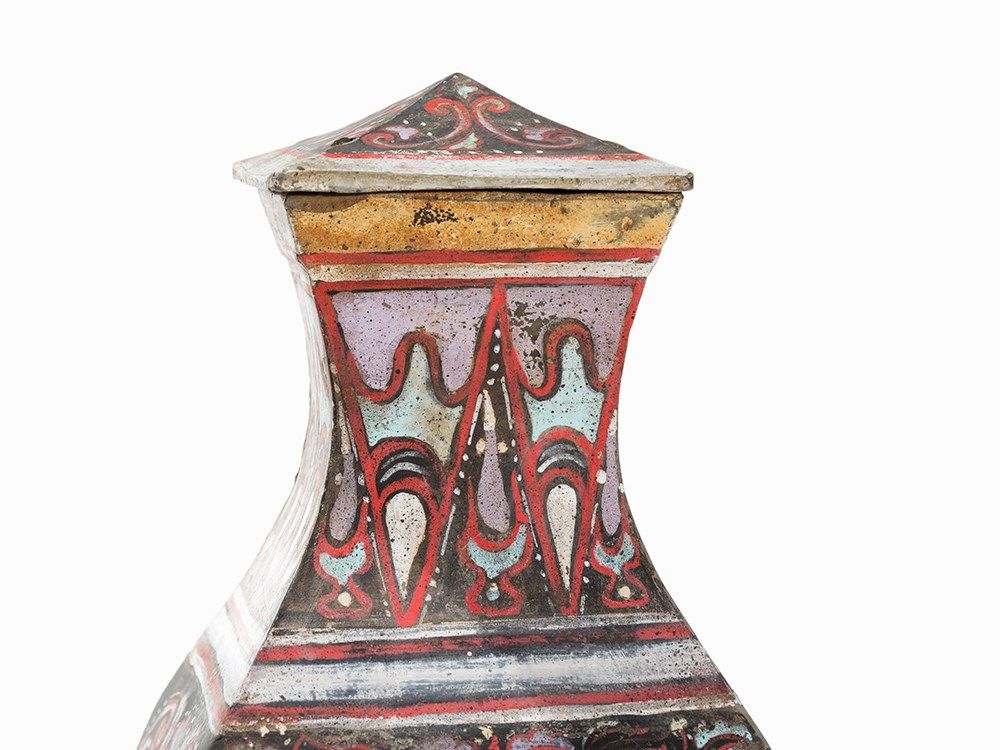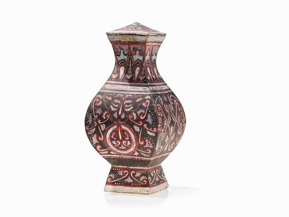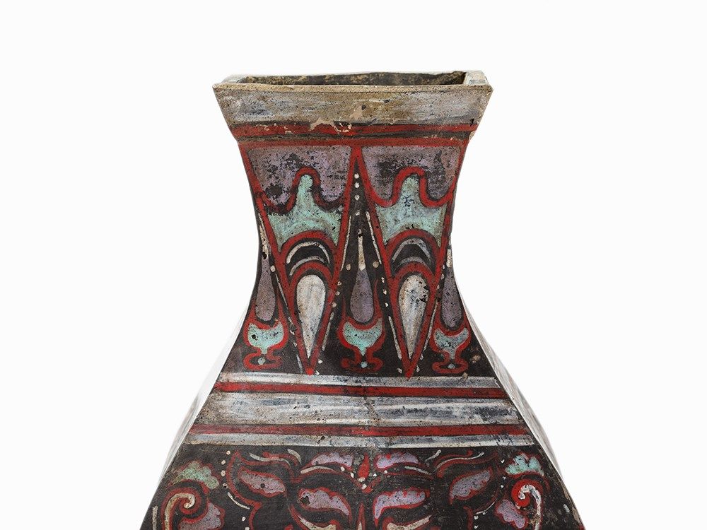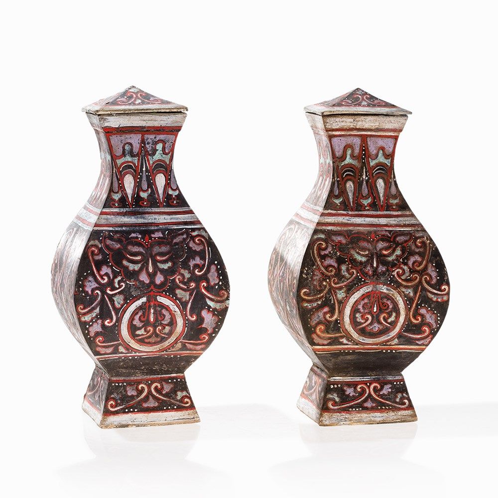 Pair of Vases FANGHU with Polychrome Painting, Han