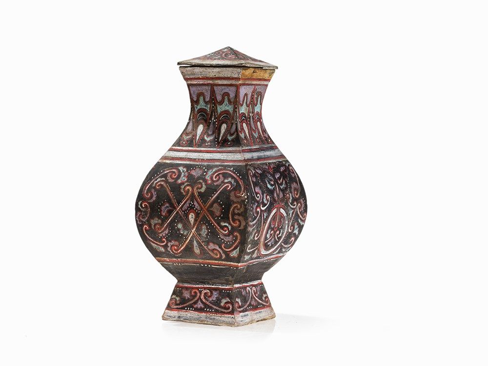 Pear-shaped square body with cover modeled after archaic bronze vessels (FANGHU)