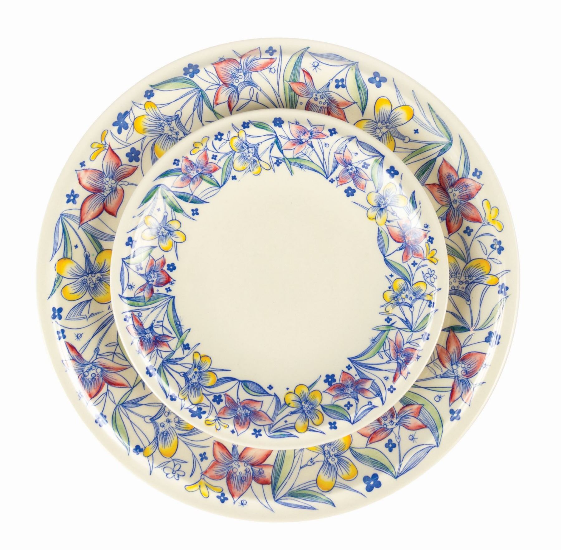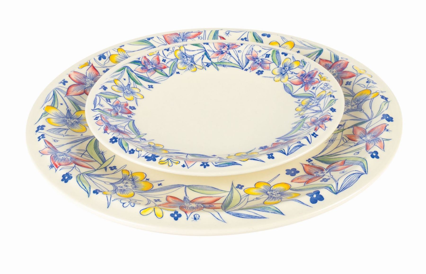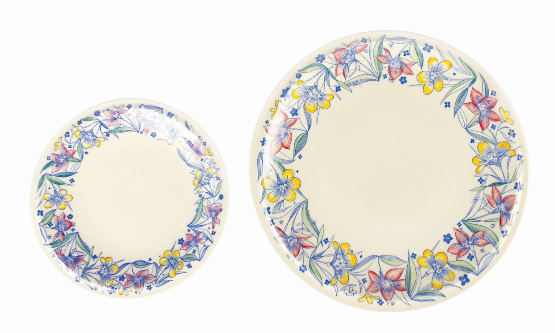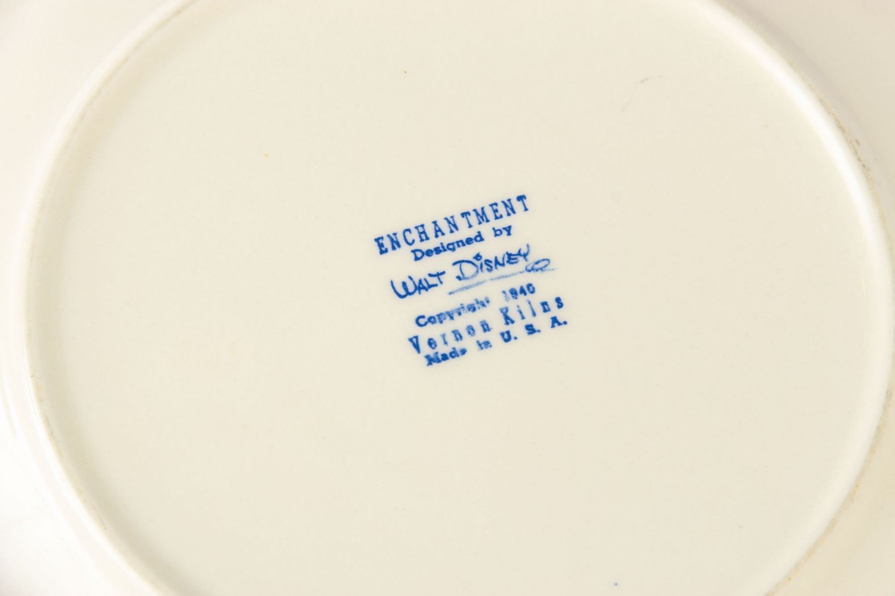 (Vernon Kilns, 1940) A pair of plates from Vernon Kilns' "Enchantment" series based on artwork from Disney's "Fantasia" and painted by Disney artist Gyo Fujikawa. The plates measure 9.5" and 13.75" in diameter and are in fine condition.