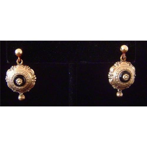 Pair of Antique Victorian 14K Gold & Onyx Earrings