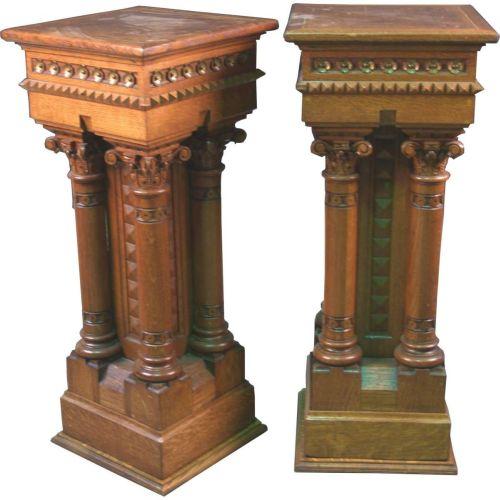 Pair of Victorian Fancy Oak Pedestals each 16 x 16 x 38" tall Restored and Magnificent
