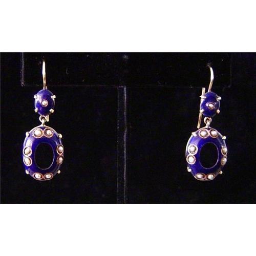 Pair of Victorian Blue Enamel Earrings