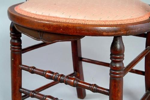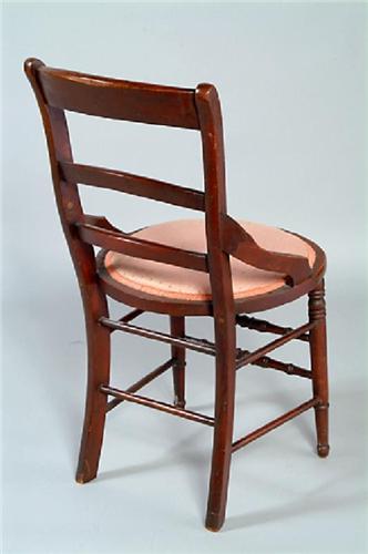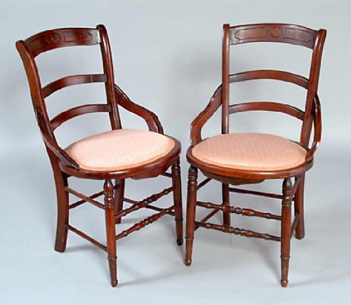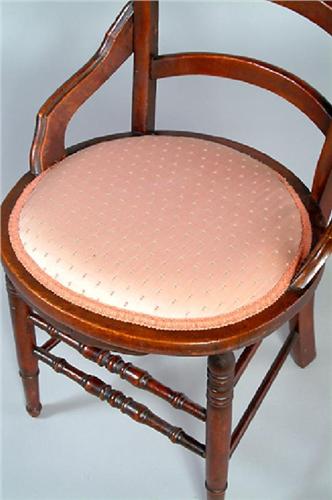 Victorian, open arm chairs with pink damask upholstery, good condition, 33 1/2" by 18 1/2" by 17 1/2".
