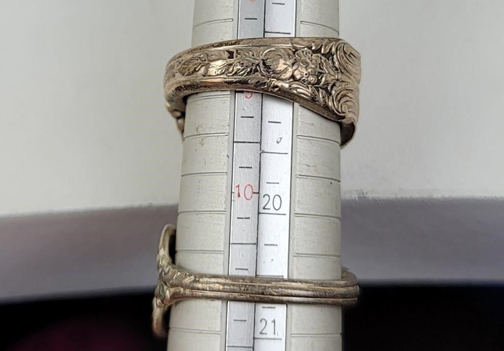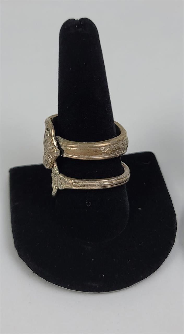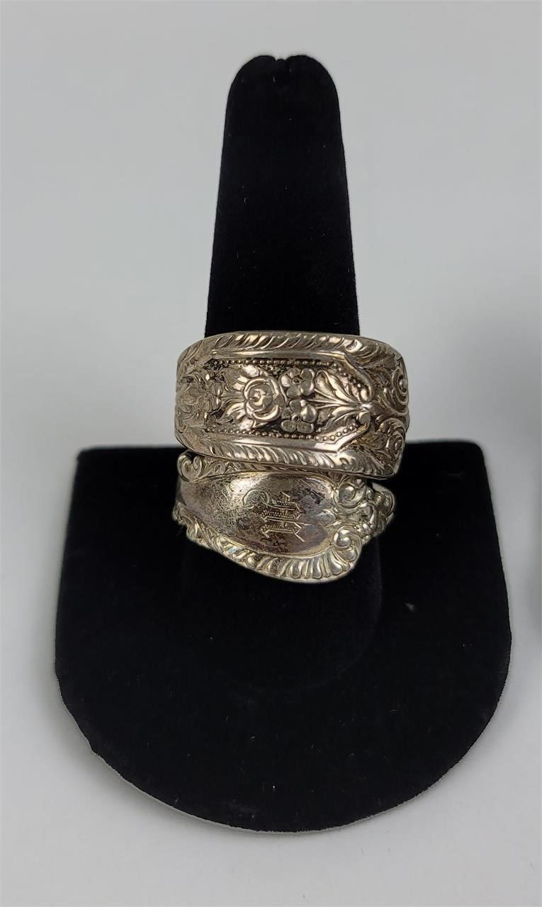 Very nice pair of rings, made from sterling silver flatware. One is size 9 one is size 11.