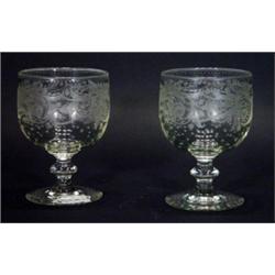 Pair of Victorian clear glass goblets cut with a band of swags and stars, 15cm high