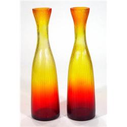 Pair of Victorian twisted amber and red gla…