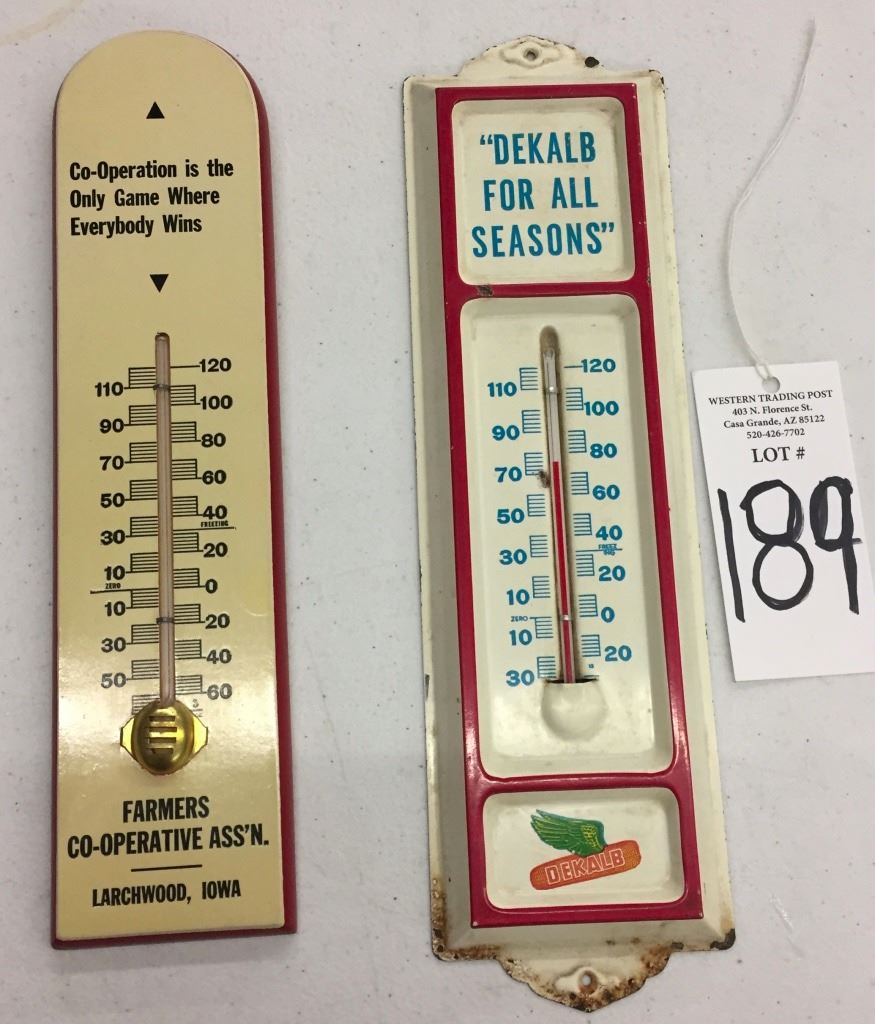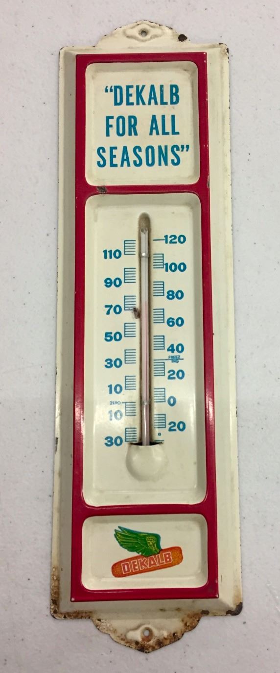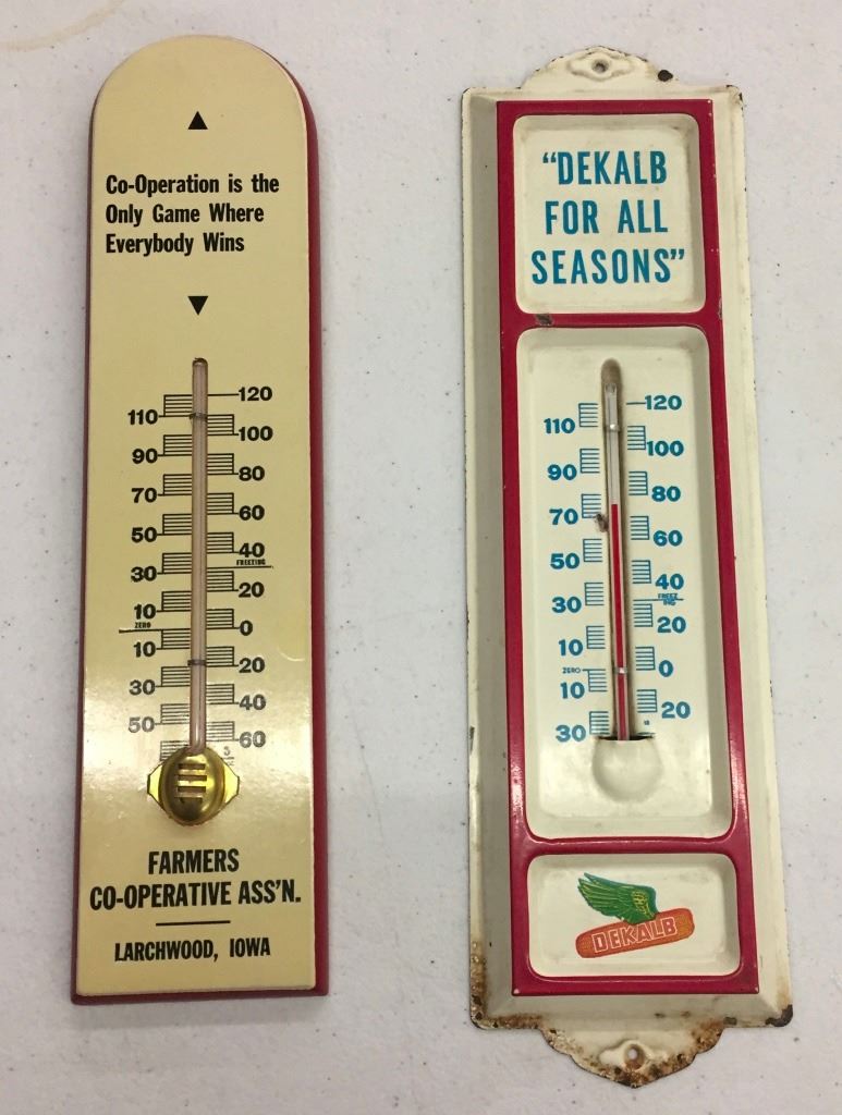 Maker: Unknown (the Farmers Co-op one says Made in USA). Approx. Age: Vintage. Size: 12” and 13” tall. Condition: Good for their ages, the Dekalb one seems to read the right temperature, the Farmers Co-op does not register. Additional Info: A pair of vintage advertising thermometers. Please look closely at the pictures - they are an important part of our description. Shipping: There will be a $8 handling / packaging fee for shipping this lot. The actual cost of postage will be added on top of that.