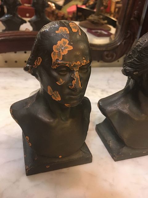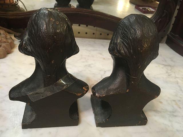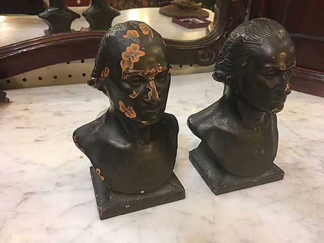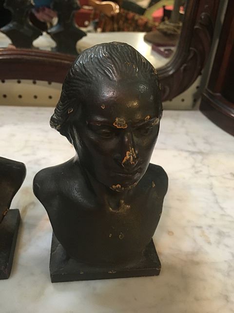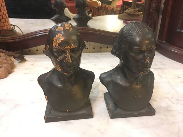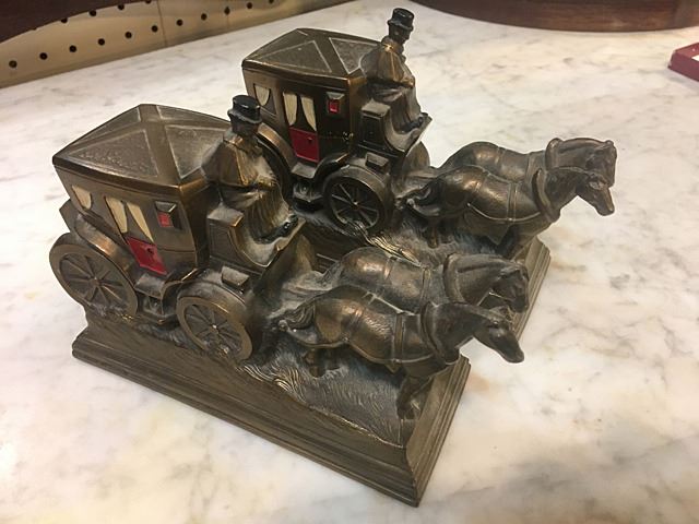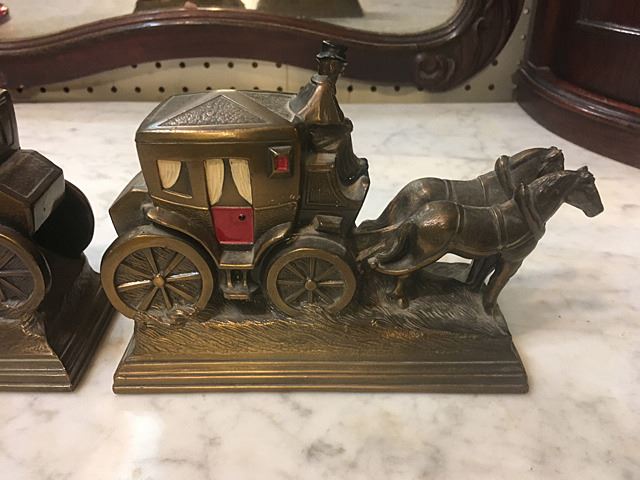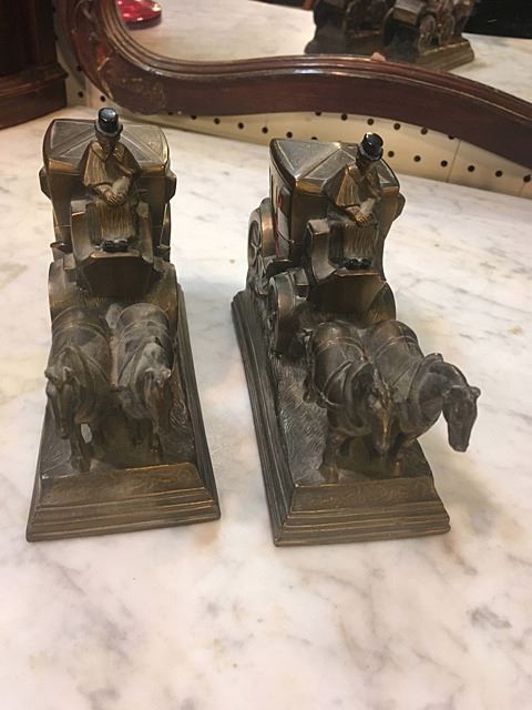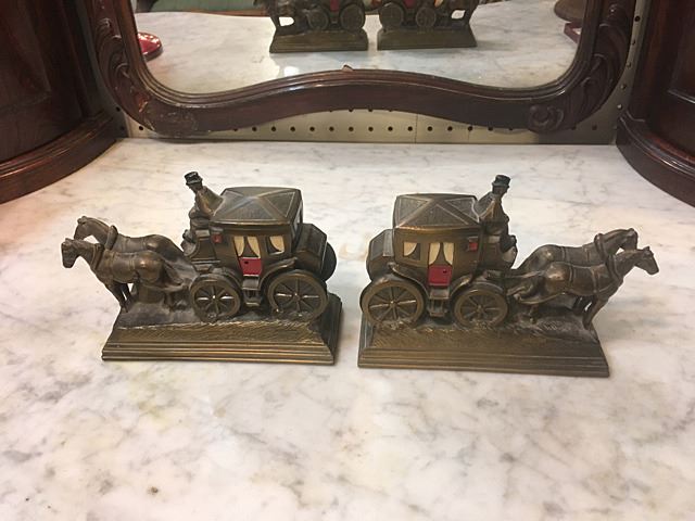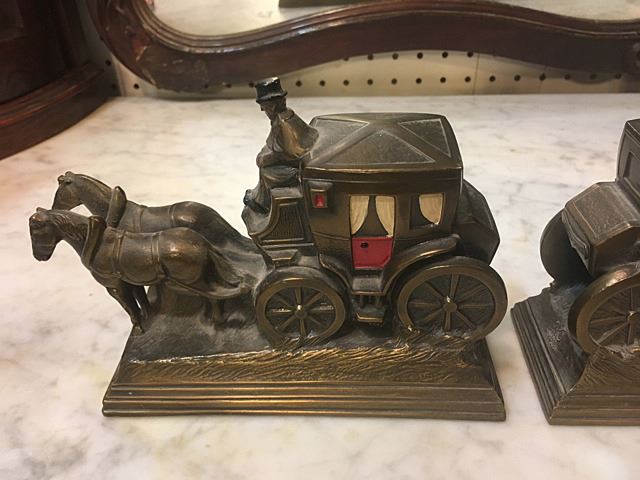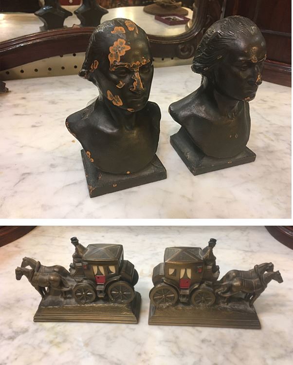 George Washington Bust pair of book ends, and nice pair of coach book ends with painted windows on the coach, driver and 2 horses.