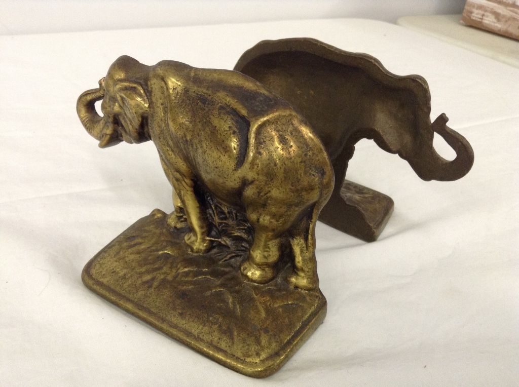 Pair of Vintage Brass Elephant Bookends