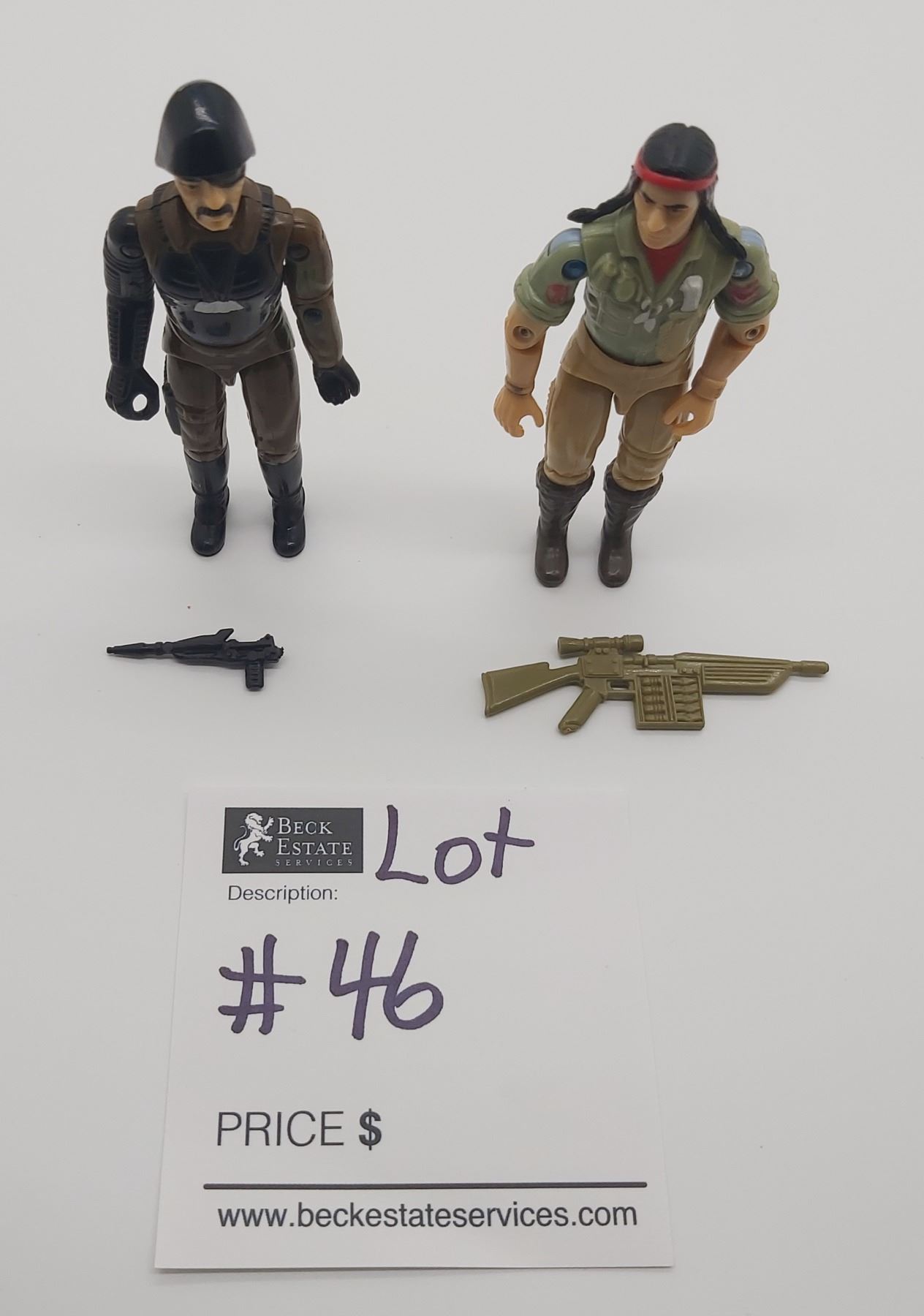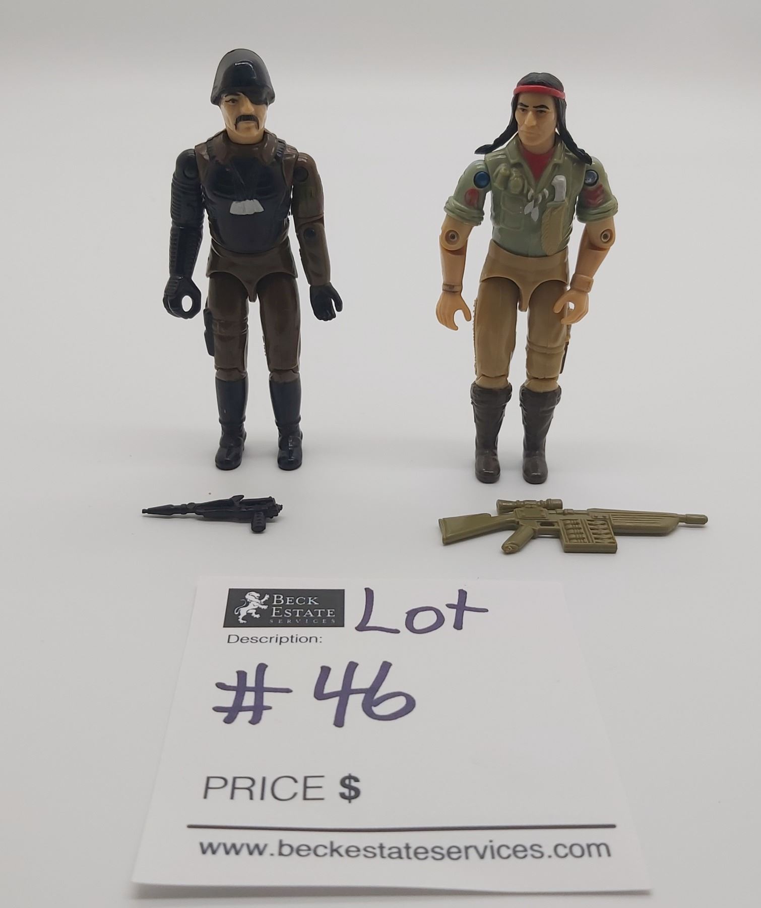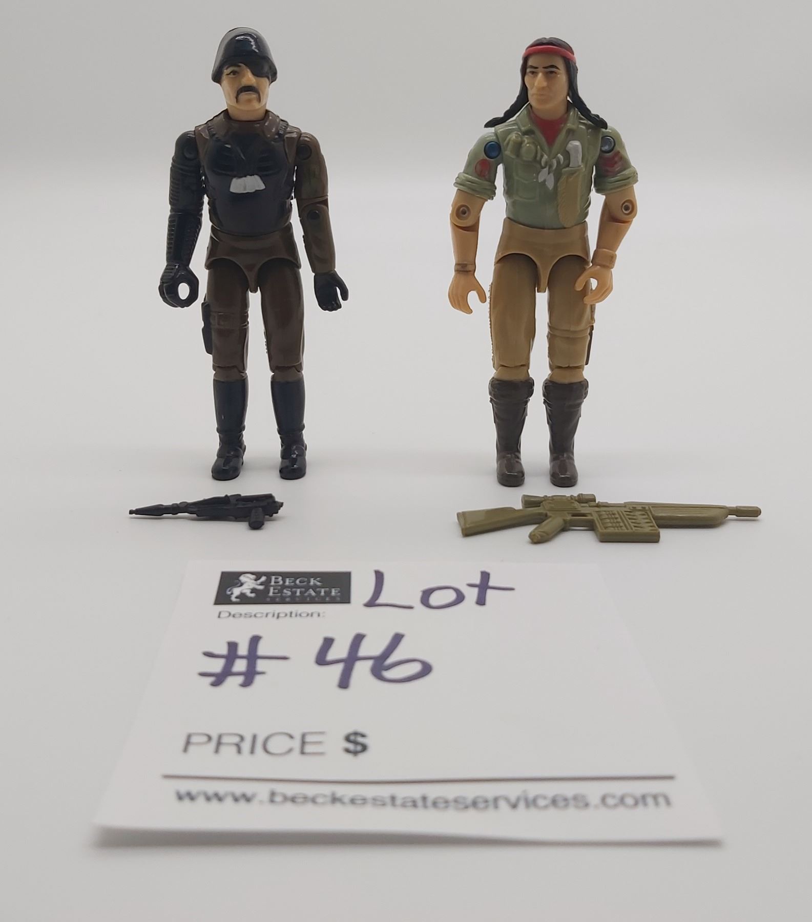 Pair of Vintage GI Joe 3 3/4" Inch Action Figures Spirit with light green automatic arrow launcher. Major Bludd Series 2 1983 Tight joints and internal elastic. He has his rocket launcher, but not his backpack.