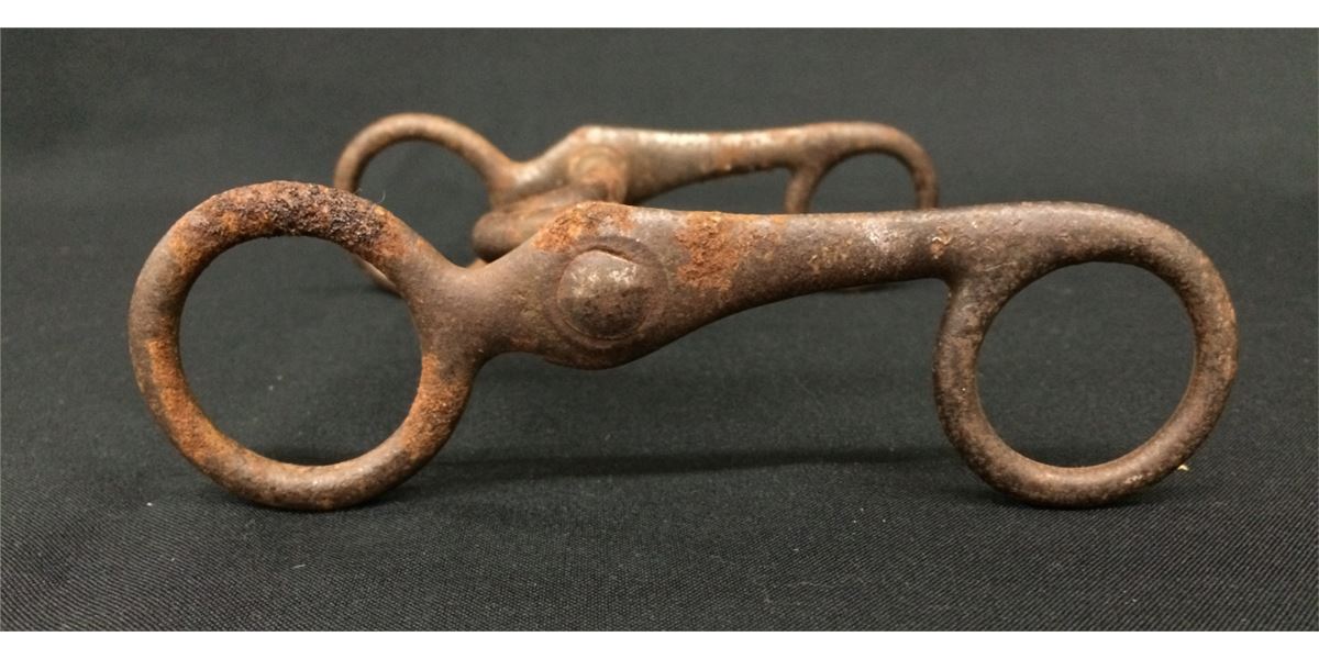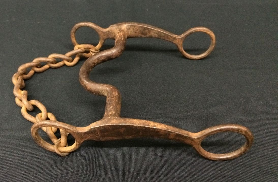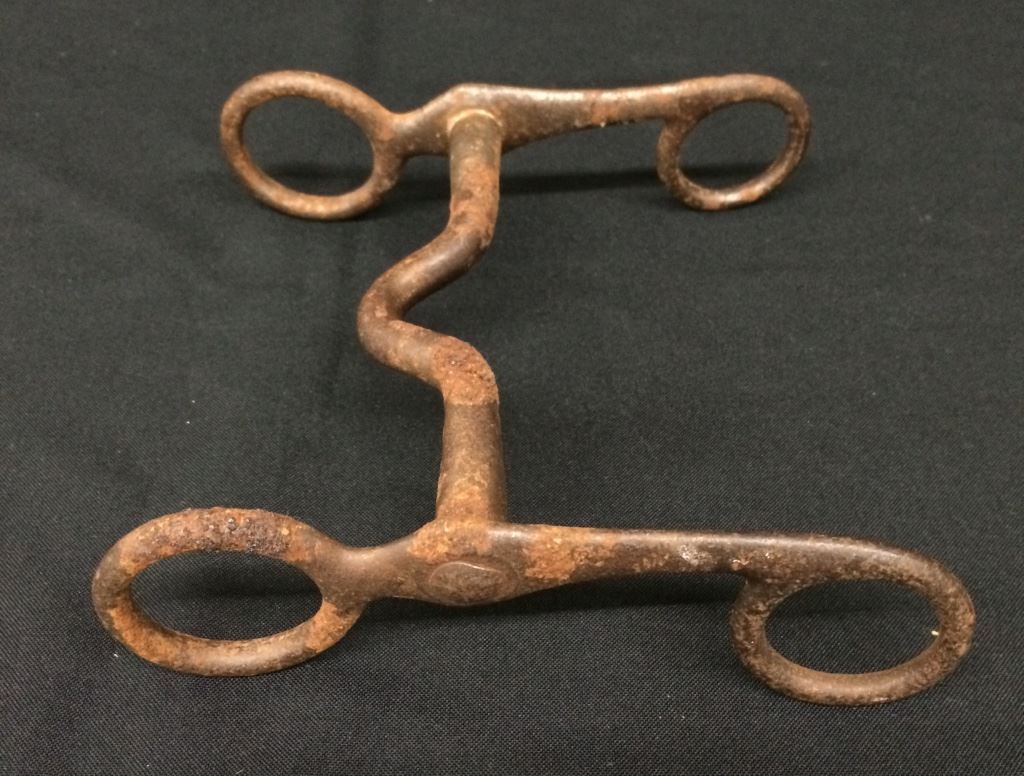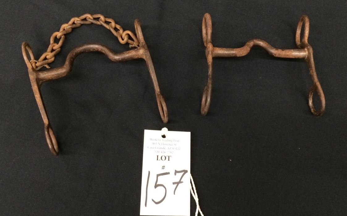You get both of these old bits for one money in this lot! One is marked with the North and Judd “anchor” mark. The other looks to be a Crockett or Kelly, but no mark was found. They each feature a 5” mouthpiece and are 6” from the top of the purchase ring to the bottom of the shank. Buy for your collection, or you can still use them!