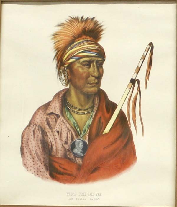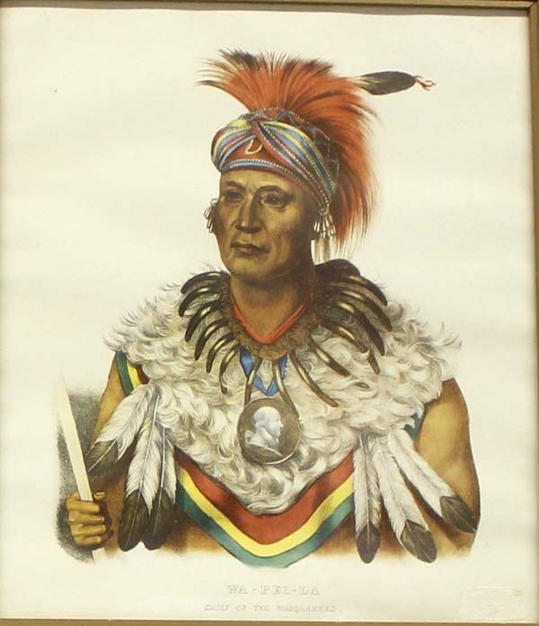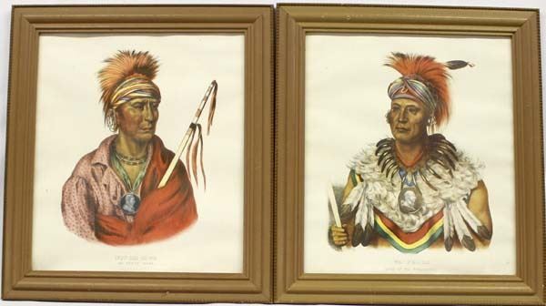 Pair of Vintage Native American Chief Prints, both are framed and under glass, visual measures 14.5'' x 12.5'', includes 1. Not-Chi-Mi-Ne an Ioway Chief and 2. Wa-Pel-La Chief of the Musquakees, both are prints from ''The McKenney & Hall prints of Native Americans, from their History of the Indian Tribes of North America (1837-1844), document an important part of American history, illustrating the great leaders of the Indian nations which have disappeared since the mid-nineteenth century. Thomas McKenney, head of the United States Bureau of Indian Affairs for many years, was a champion of the Indian and fought throughout his tenure to preserve something of their culture, so integral a part of the history of the United States.''