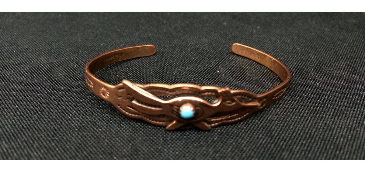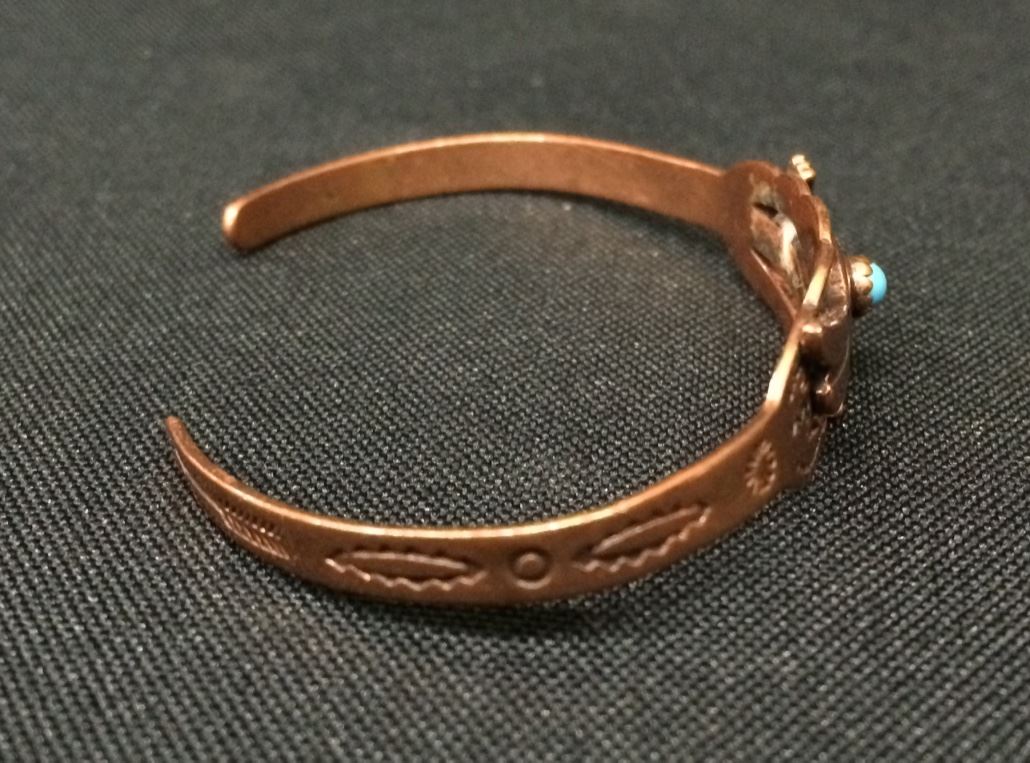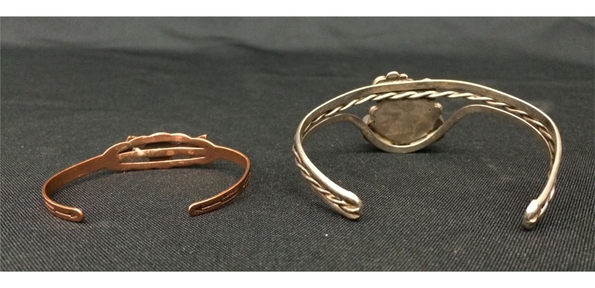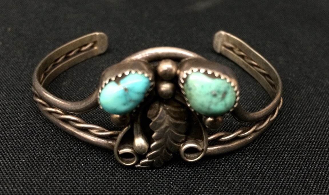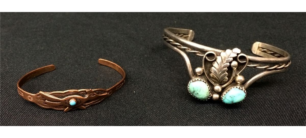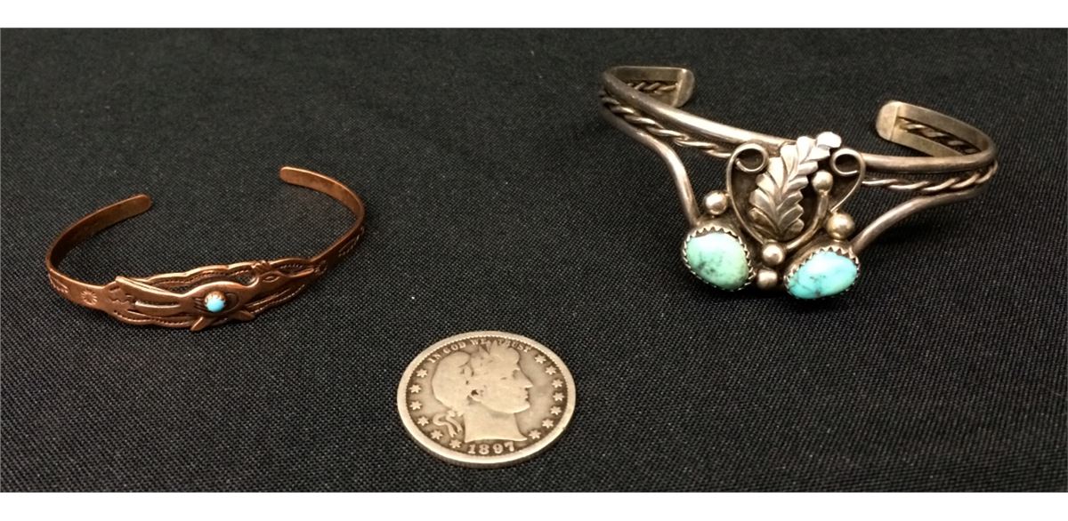 You get both of these vintage bracelets for 1 money in this lot! The sterling and turquoise bracelet is signed Tony Garcia (Navajo?). It measures 5.5” inside plus there is a 1.25” opening. It weighs 17.7g. The copper bracelet is marked copper and EM. Good vintage condition. Shipping: There will be a $5 handling / packaging fee for shipping this lot. The actual cost of postage will be added on top of that.