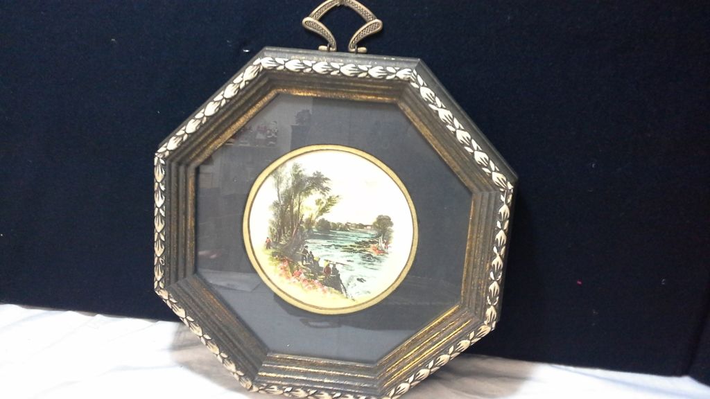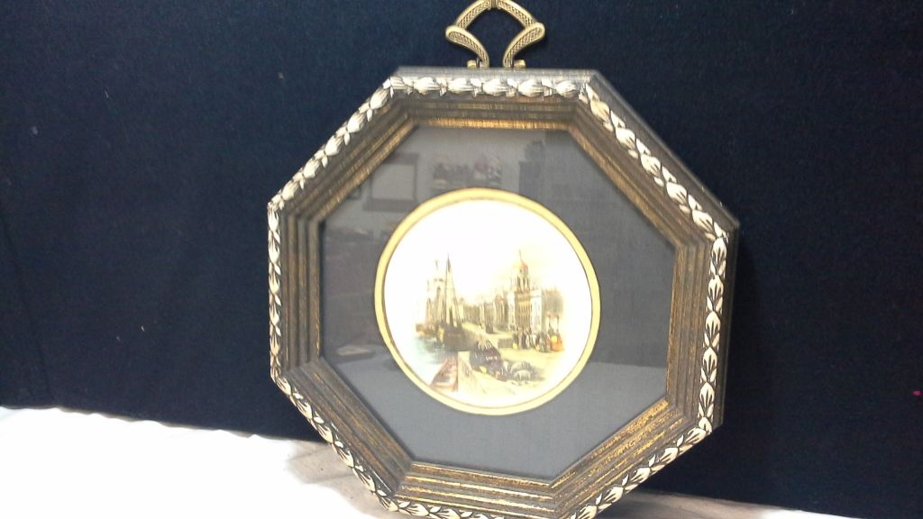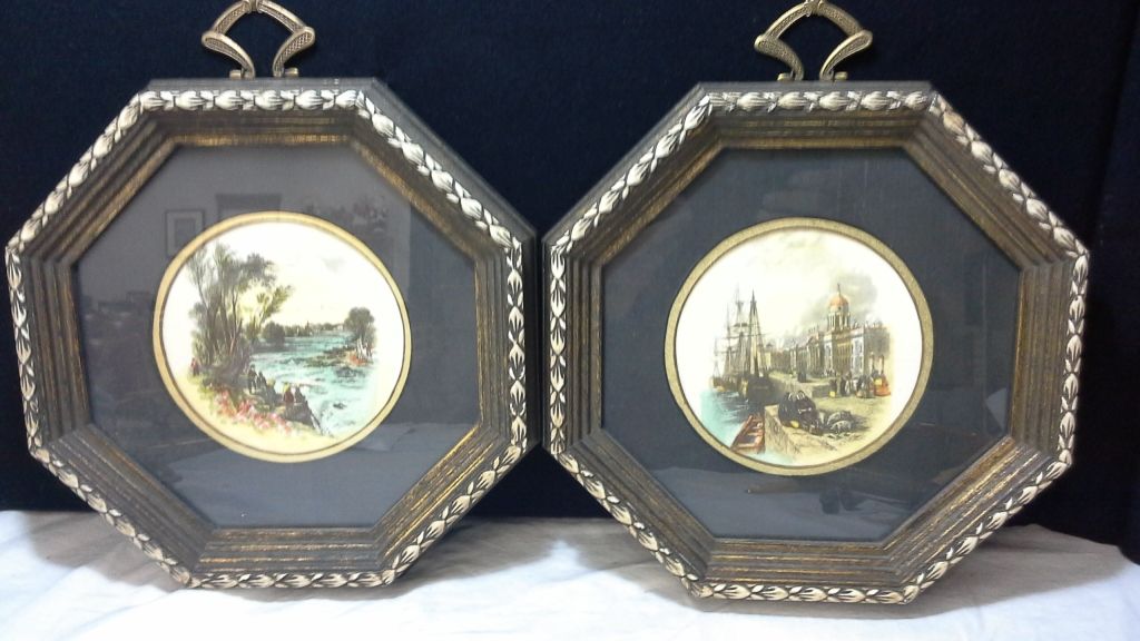 Pair of Vintage Octagon Framed Hand Colored Gravure Prints