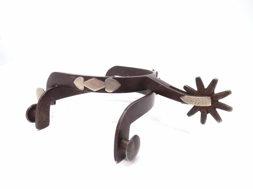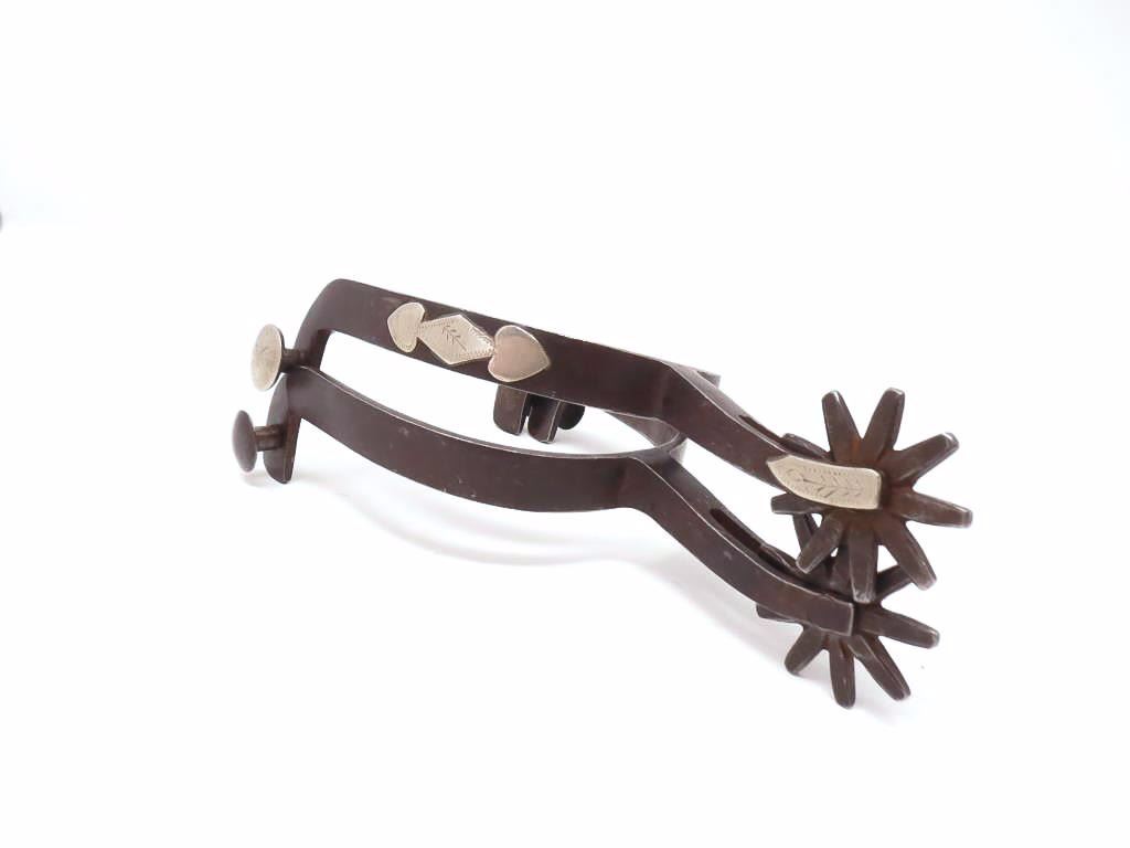 Single nickel mounting. 1.5" spoke rowels. These light spurs are of an elegant refined design but are unmarked. Great workmanship.