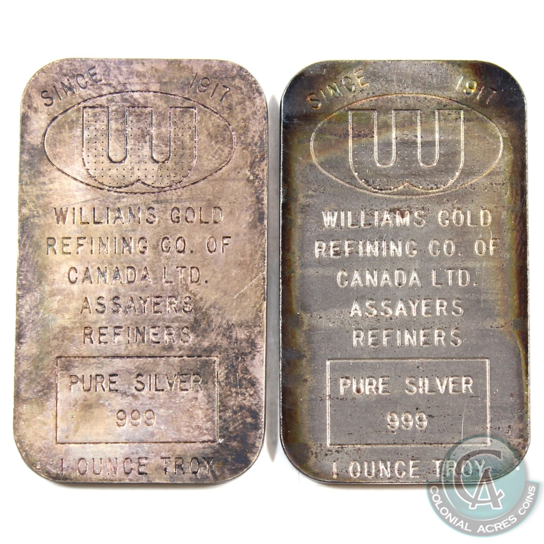 Pair of Vintage Williams Gold Refining Co. 1oz Fine Silver Bars (TAX Exempt). 2pcs.