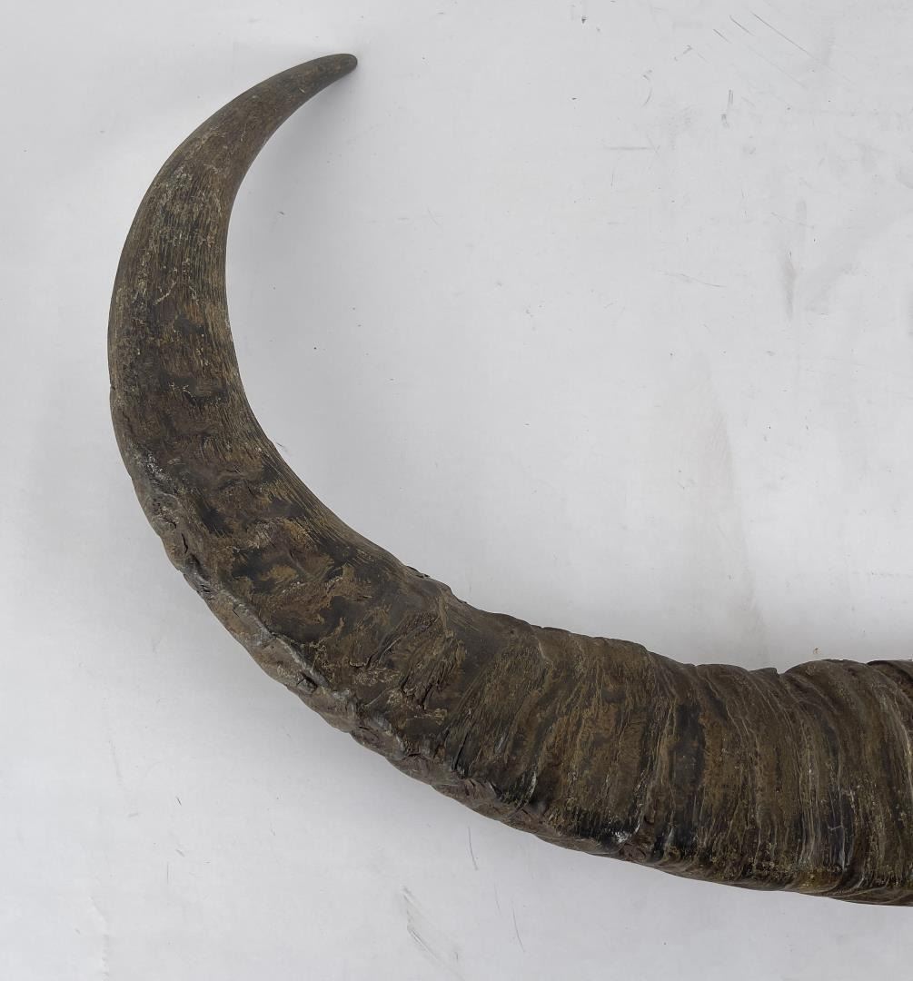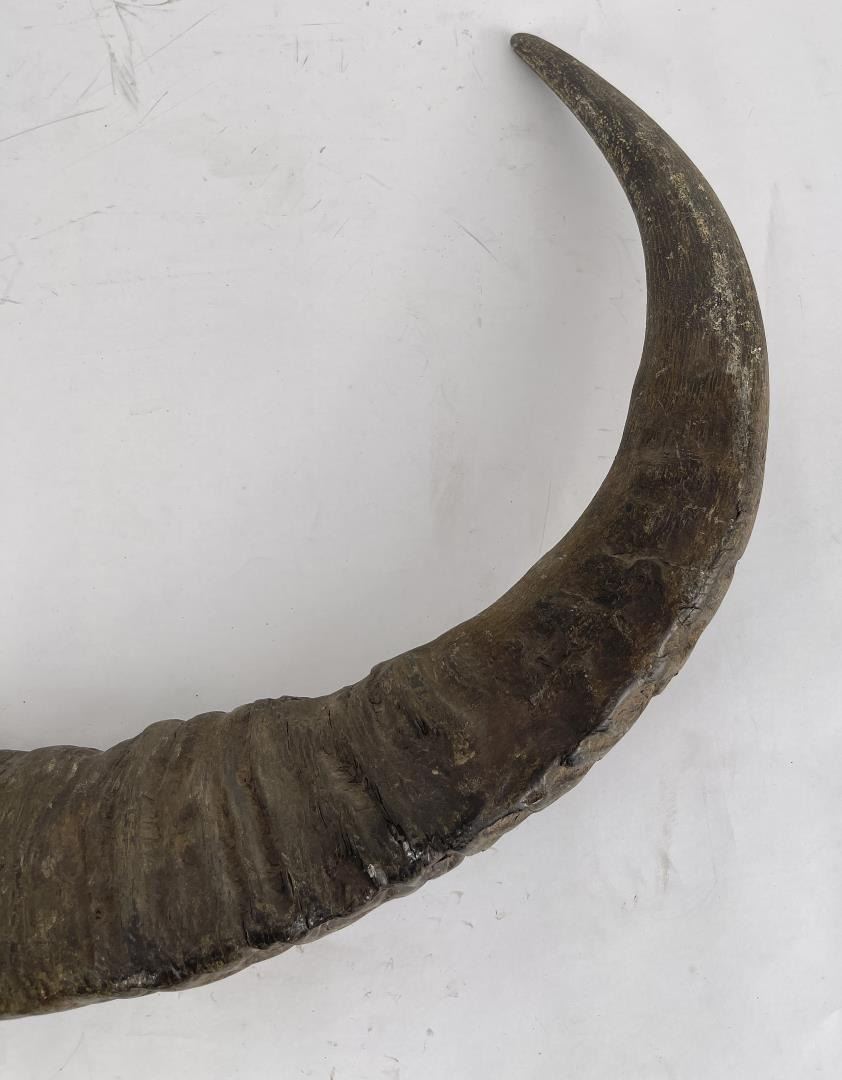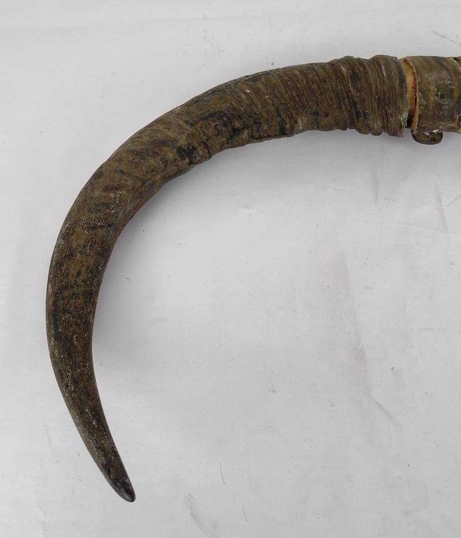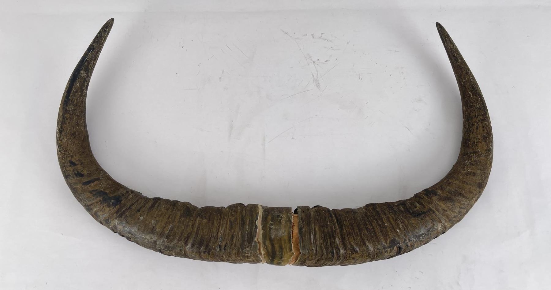 Neat pair of horns. 27.5" wide.