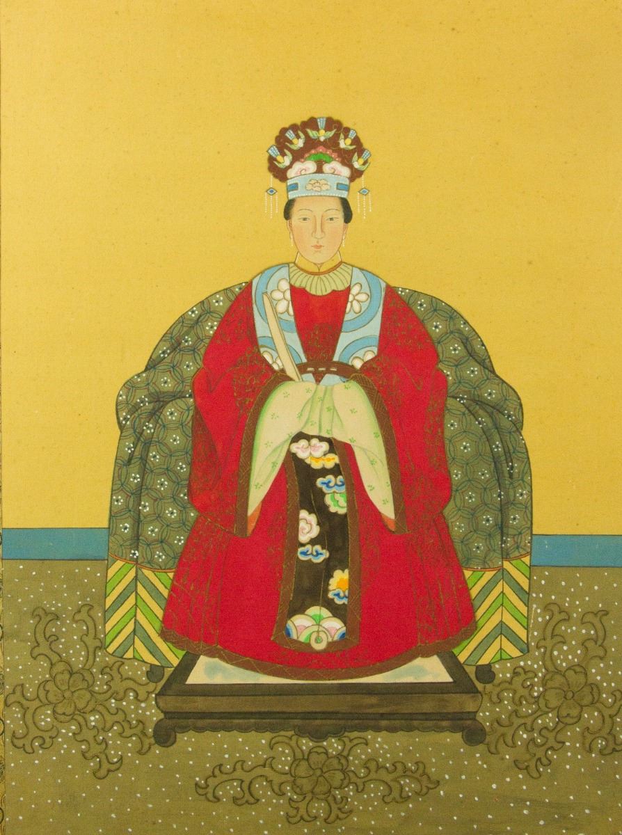 Portrait of emperor and empress; Chinese ink and watercolour on paper; with frame; Qing Period; 69 cm × 52 cm