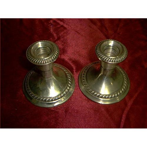 Pair of Weighted Sterling Silver Candle Holders. Stamped on bottom: GORHAM STERLING CEMENT FILLED REINFORCED WITH ROD OF OTHER METAL 667 . Measures 3.5" tall by 4" wide at base. In great condition, except for many small dings in each of the bases. Still very elegant and contains that quality look. GREAT GIFT & HAPPY HOLIDAYS.
