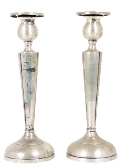Two silver candlesticks marked on bottom: sterling reinforced with cement & steel rod.