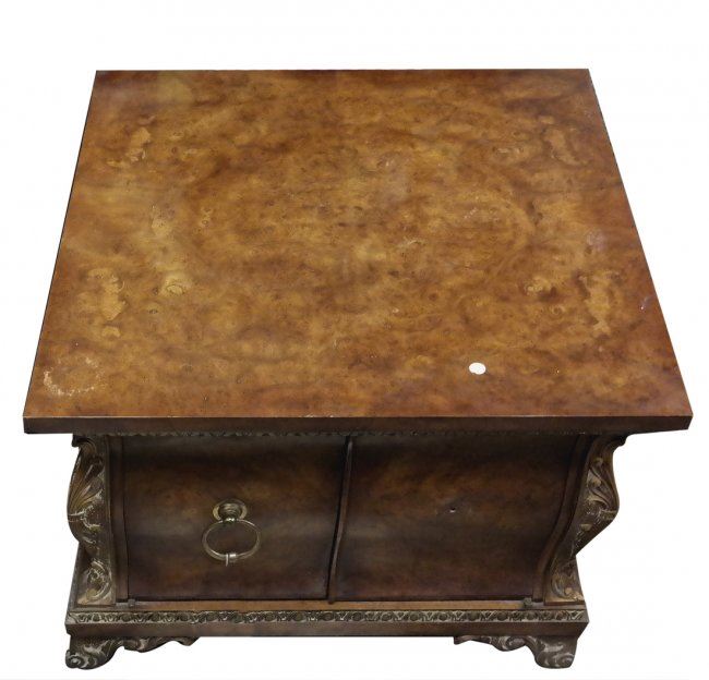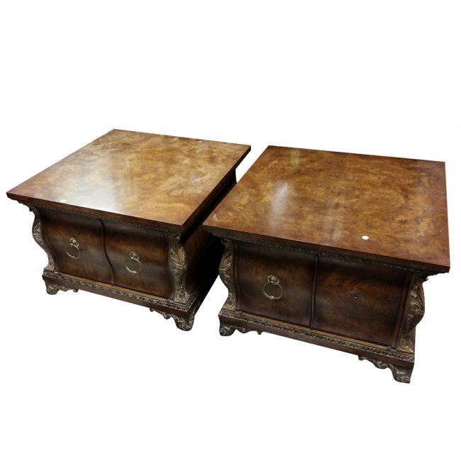 Pair of Weiman end tables. [28 1/2" x 28 1/2" x 22" H]. Some wear.