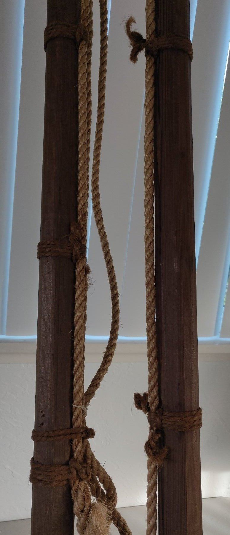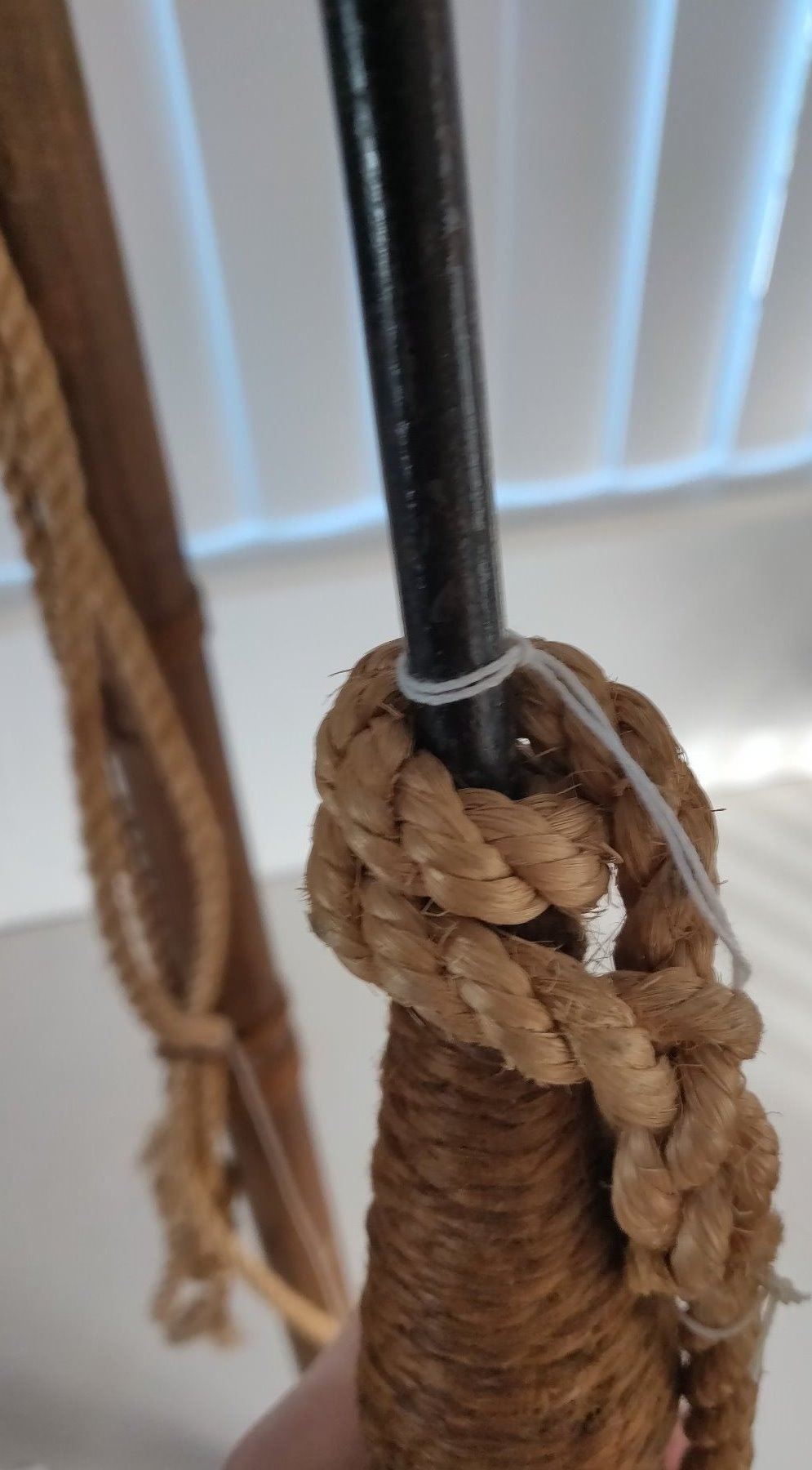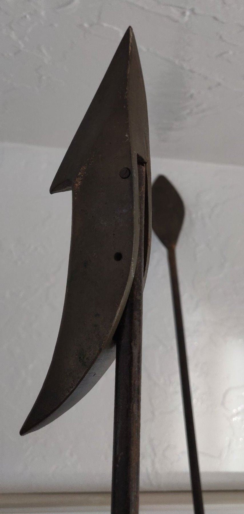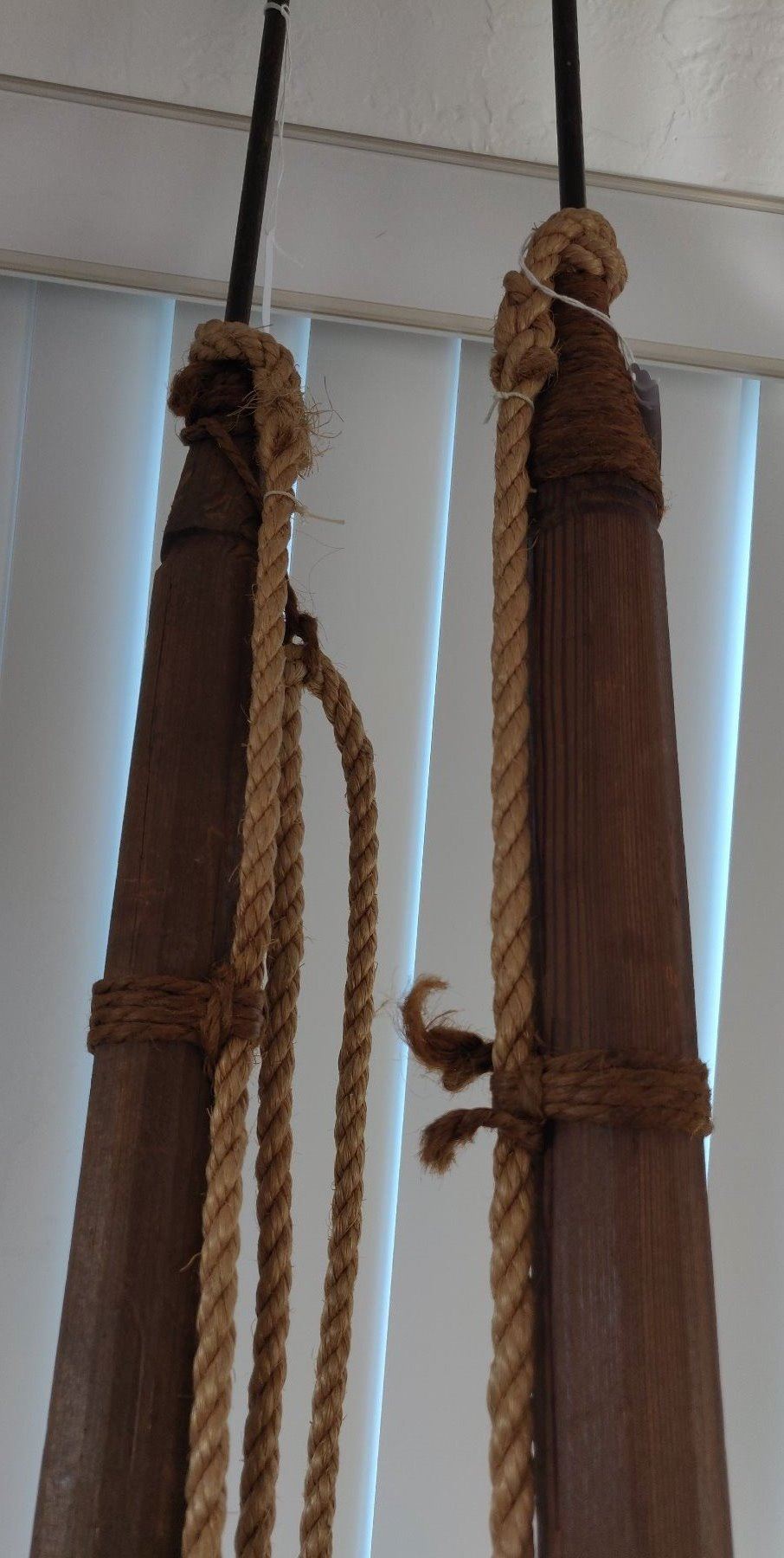 Pair of Whale Harpoons, c. 1920s. Made of steel, rope, brass and wood, the items measure 65" and 70" long. USA. Poles have been shortened for display. Condition: Good, see images. Shipping: $150.00 USA estimate only, due to size and heavy weight, w/insurance and signature.