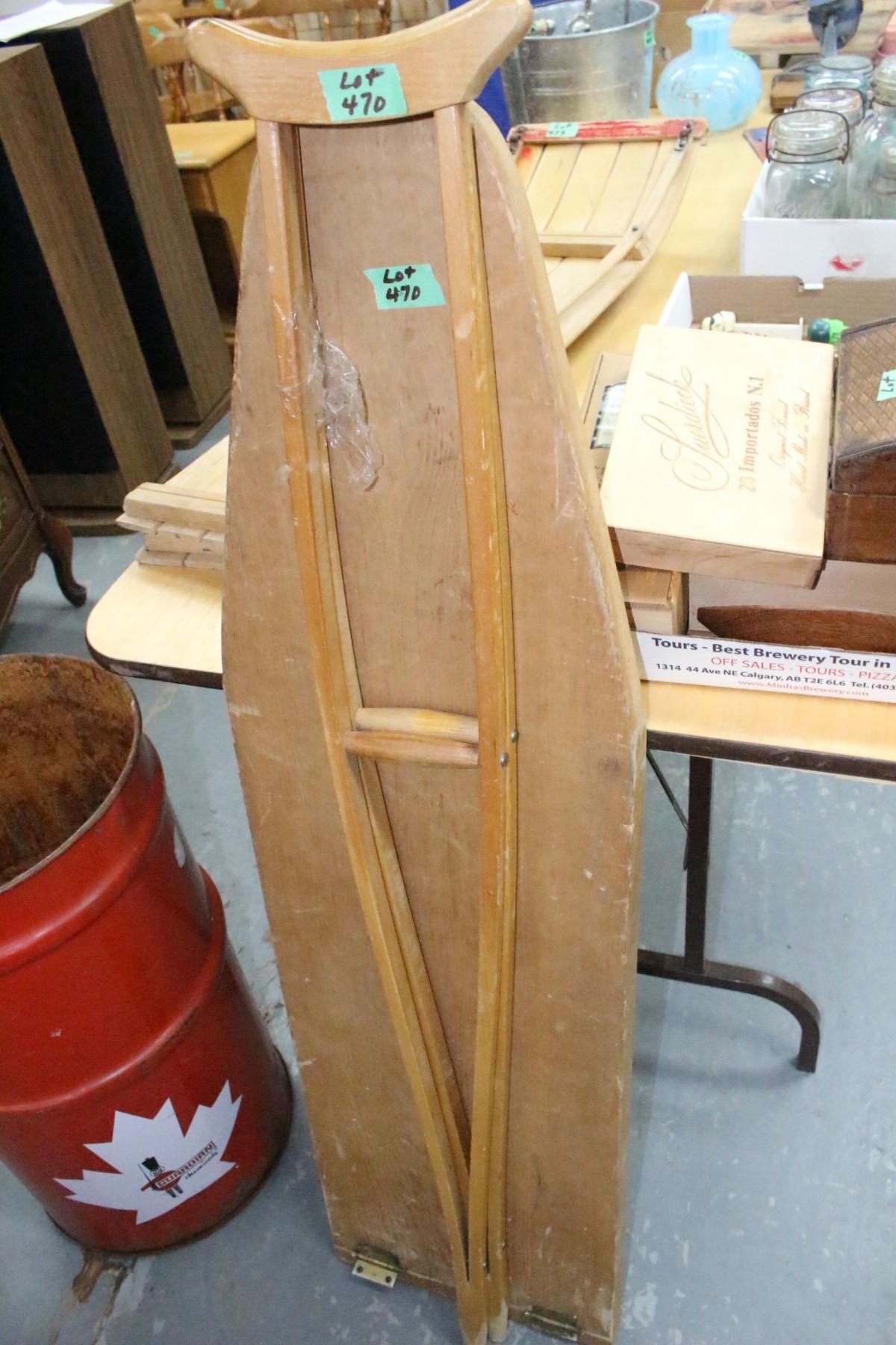 Pair of Wooden Crutches and an Ironing Board