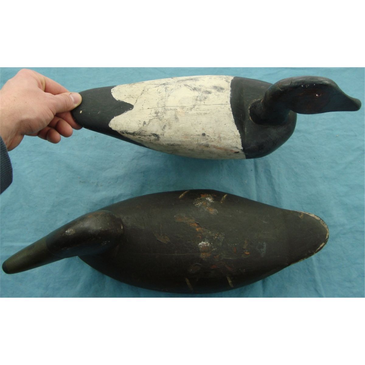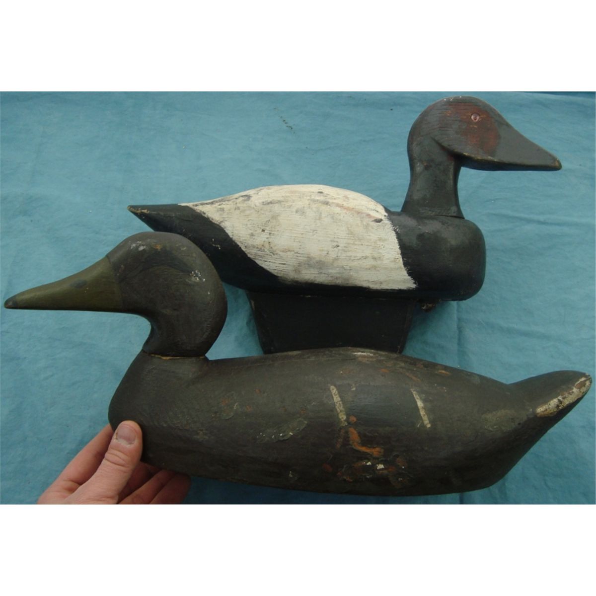 Black duck measuring approx. 17". Canvas back measuring approx. 15 1/2". Both appear to be working birds in good condition.